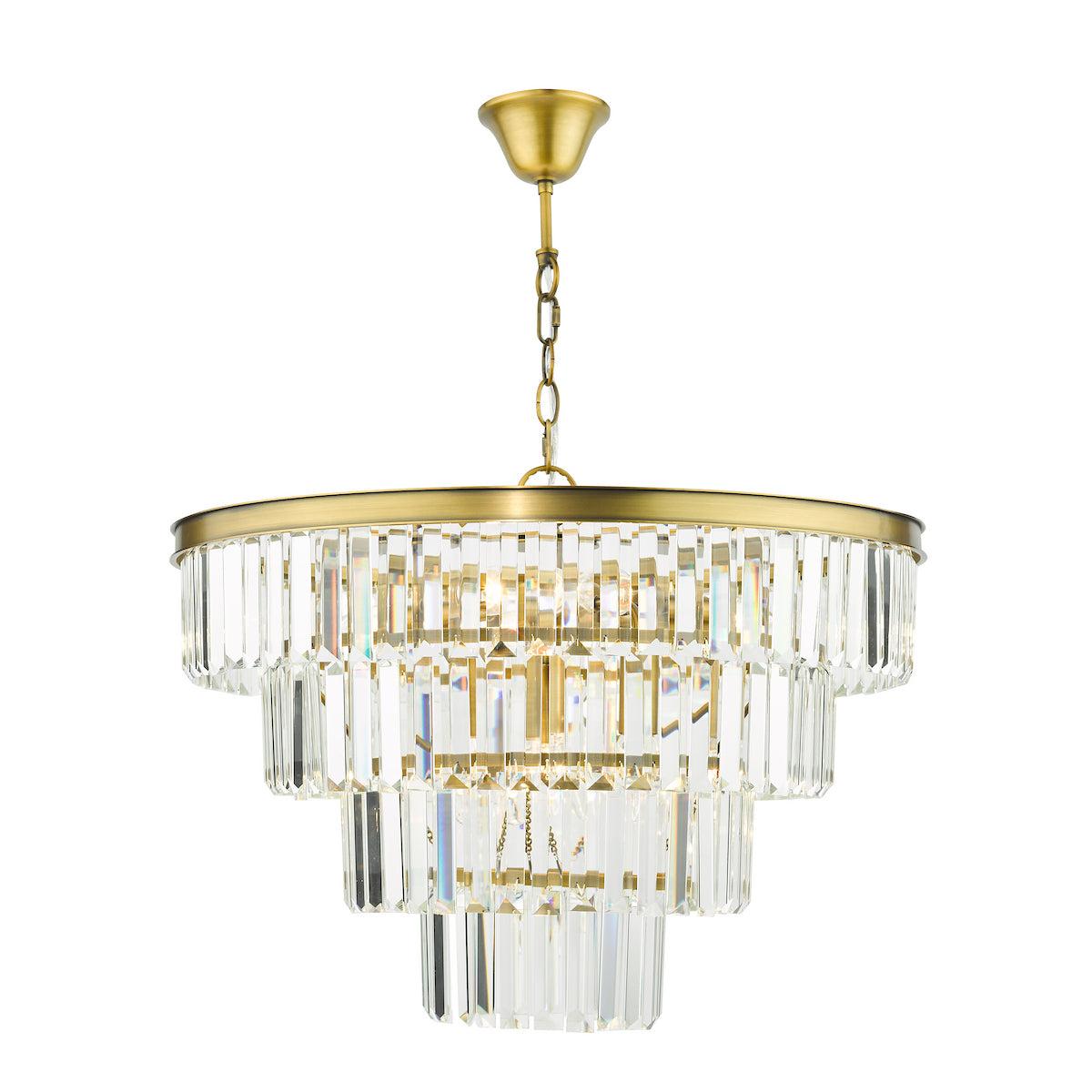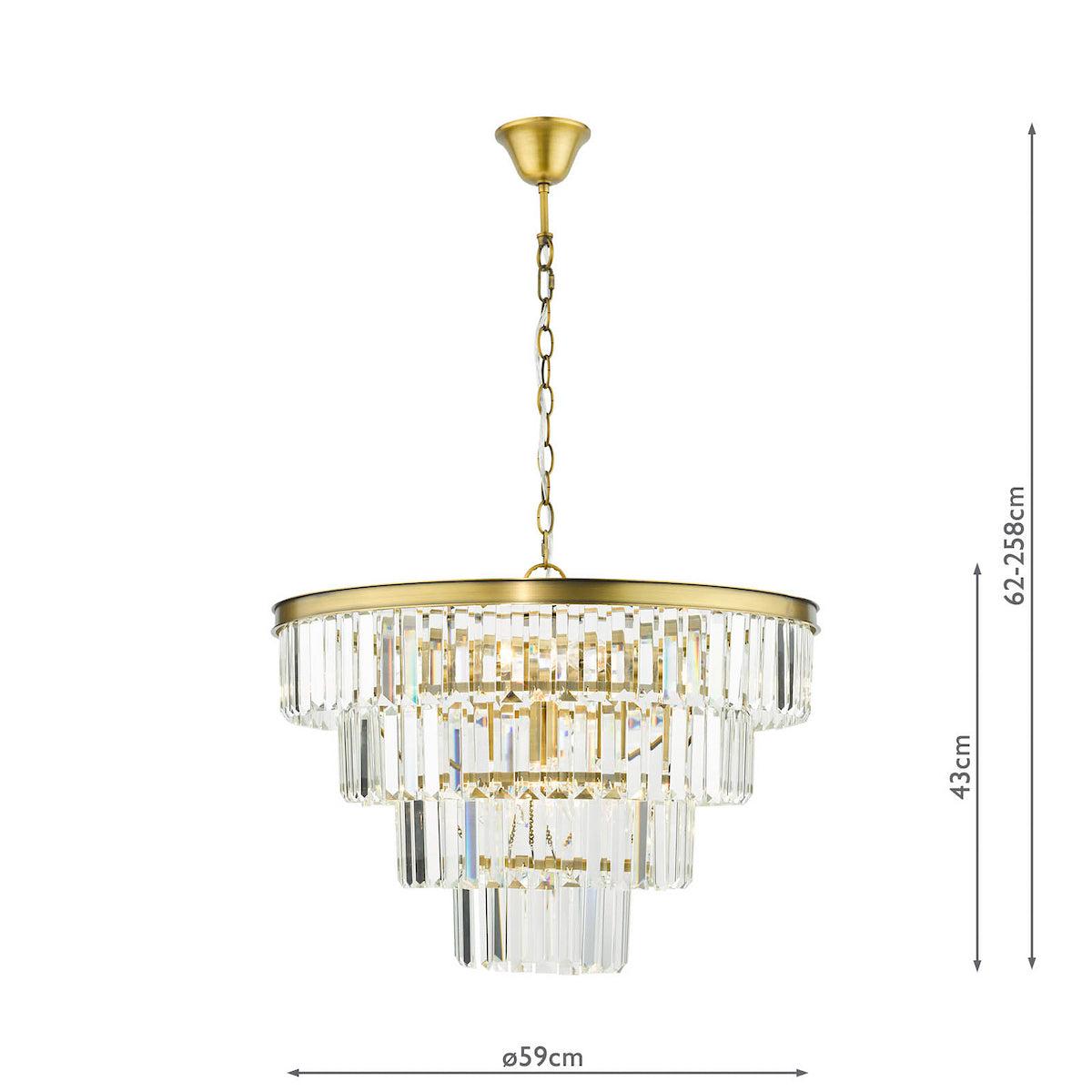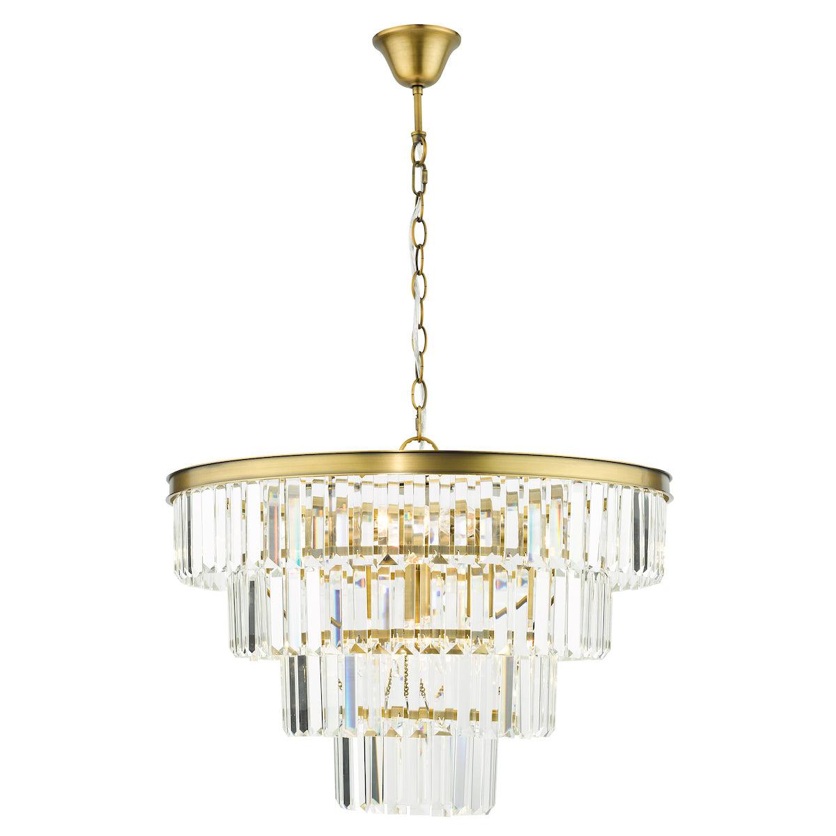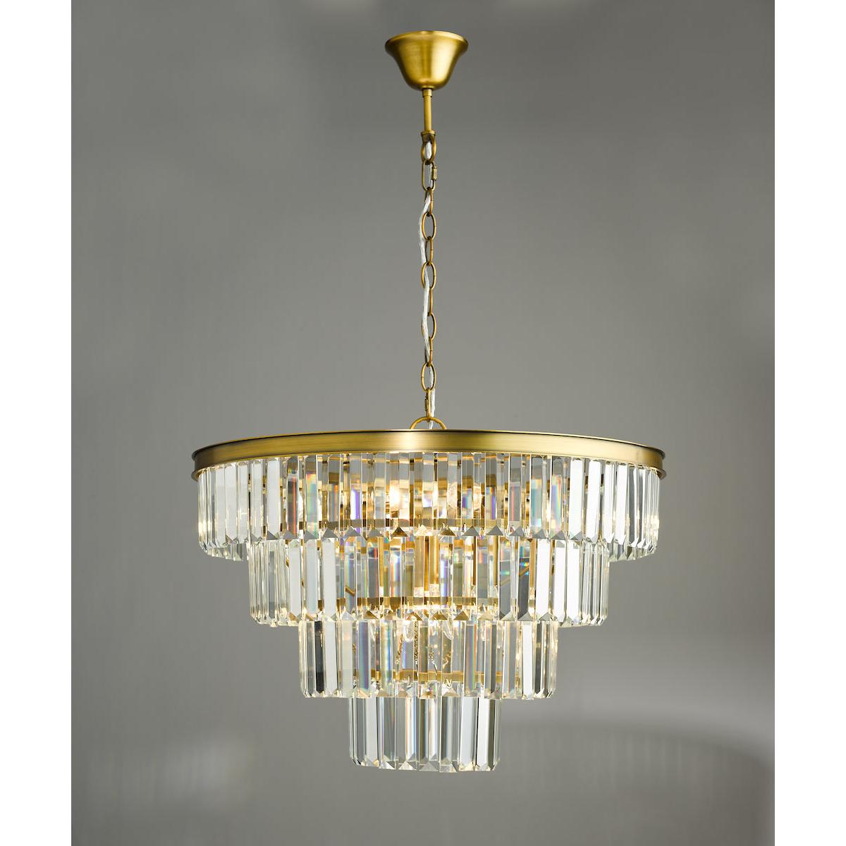 With four stepped tiers of bevelled crystals suspended from a bronze frame, the Rhapsody 6-Light Natural Brass Chandelier combines luxury materials with grand proportions to create a real statement wherever it is placed. Supplied with 2 metres of cable and matching bronze chain, Rhapsody can be adjusted from just under 60cm to just over 2.5 metres, making it as versatile as it is captivating. Height is adjustable at the point of installation (62-258cm)