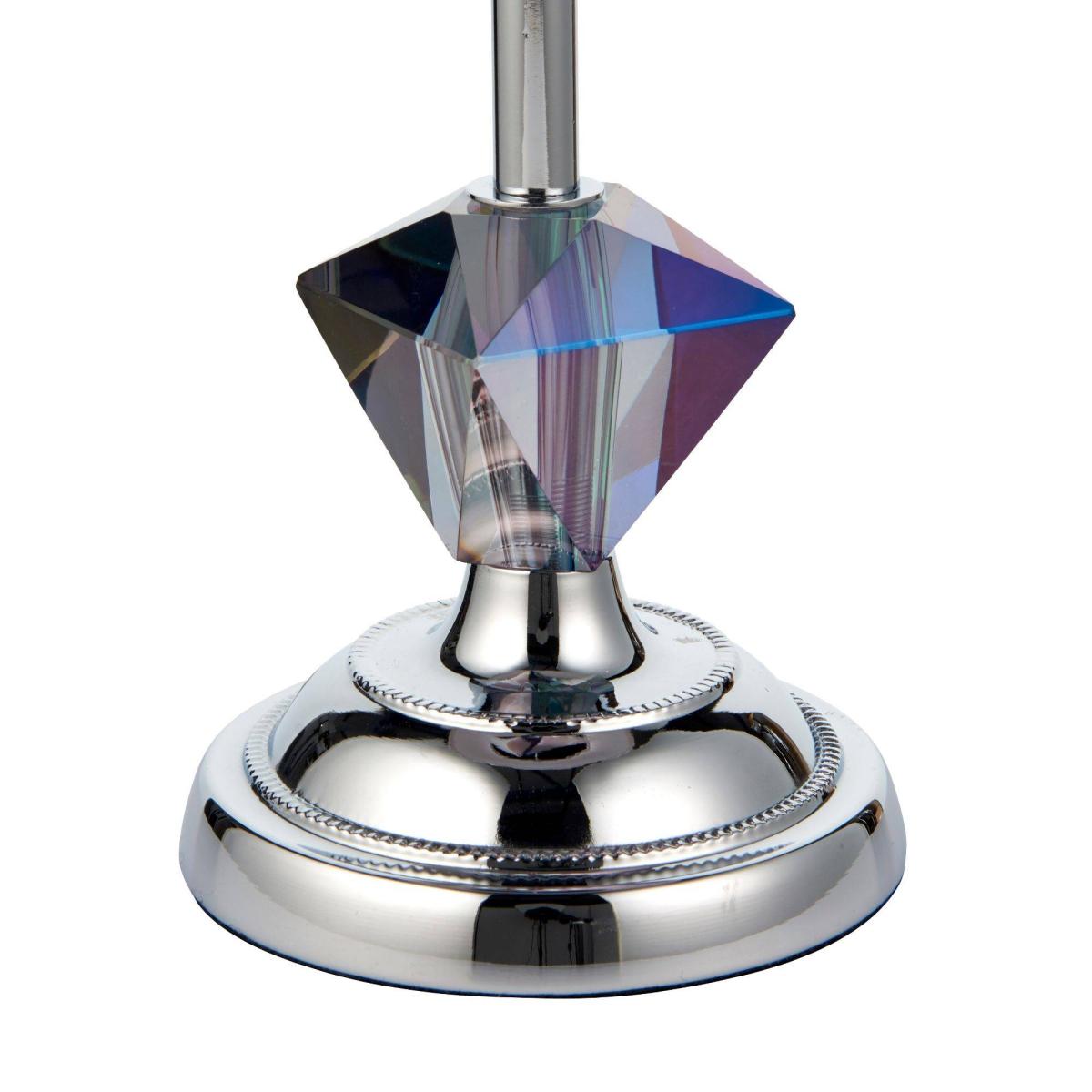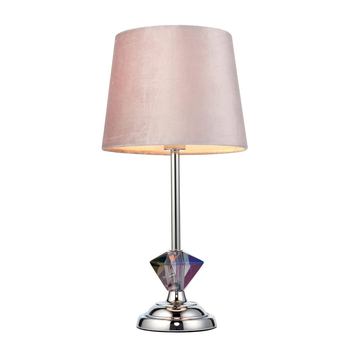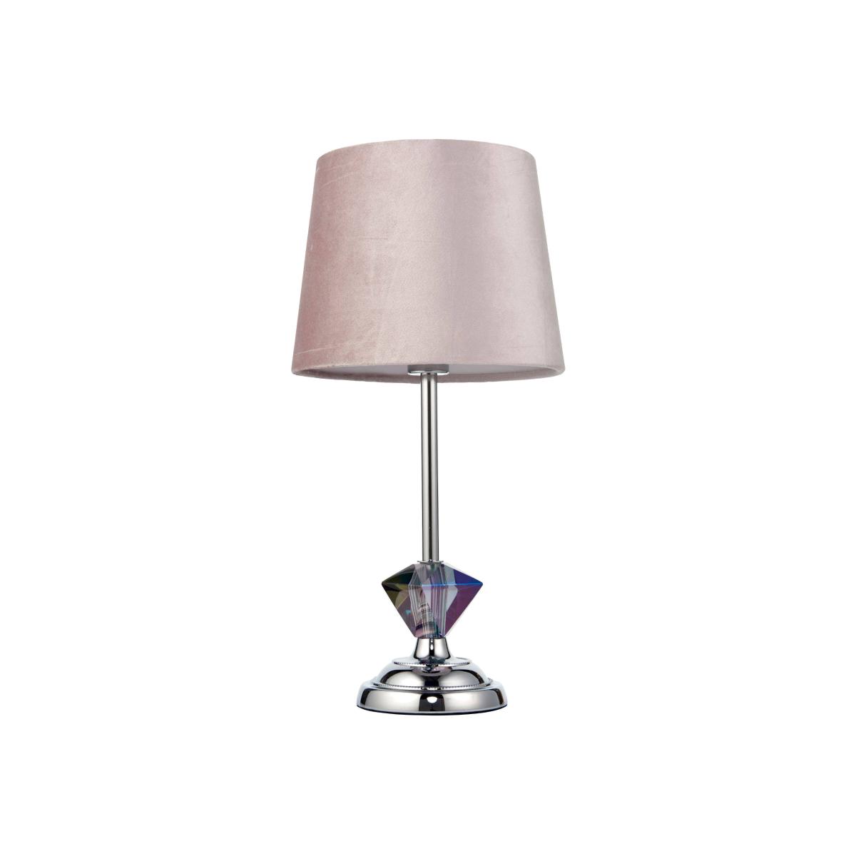 Understated polished chrome table lamp with blush velour shade and iridescent glass crystal. Decorate your interiors with the beautiful Rhea table lamp, an understated and modern table lamp, exclusive to Pagazzi. A thin, polished chrome table lamp base embellishes a gorgeous iridescent glass crystal, which sparkles when lit. A versatile and contemporary blush velour shade completes the look, perfect for any style of interior design. This modern lamp is set to add the finishing touch of style to bedside tables, living rooms or hallways. Pagazzi recommends using our LED E14 bulbs in either warm or cool white.
