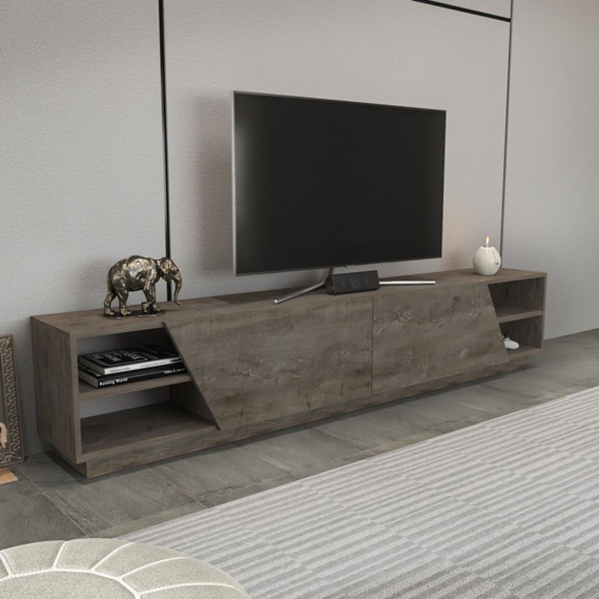 I love this modern TV unit for its sleek, Wenge-patterned finish, which adds a touch of sophistication to contemporary interiors. It works particularly well in minimalist or Scandinavian-style spaces, providing both style and practicality with ample shelving for media devices, books, or decorative accessories. For styling tips, consider pairing it with neutral-toned décor and textured textiles to keep the look balanced. You could also enhance its modern appeal with monochrome or metallic accents on top, such as a simple vase or sculpture. Its clean lines make it versatile enough to suit open-plan living rooms or more compact spaces, where it can serve as a statement piece without overwhelming the room.