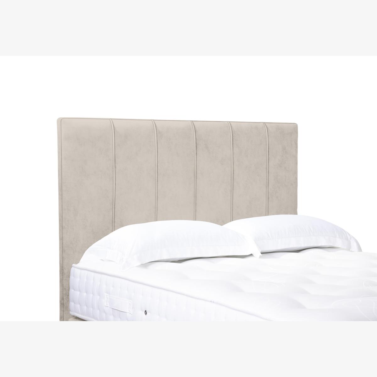 Discover The Artisan Collection, designed to bring handcrafted luxury and style to your bedroom. This premium range includes a selection of divan bases – from traditional platform tops offering a firmer feel to sumptuous pocket sprung options for enhanced mattress comfort. Many divan bases are available with storage drawers, in both standard and on-trend shallow designs. Complement your divan with one of the collection’s striking floor-standing headboards, including standout winged designs. Each piece in The Artisan Collection is beautifully upholstered in a wide choice of luxury fabrics and handcrafted in the UK, ensuring exceptional quality and elegant style for your sleep sanctuary. Rows of neat vertical piping give this modern floor standing headboard a beautiful, tailored look. Handcrafted and available in a wide choice of fabric options. Why you'll love it Elegant piping gives this modern headboard a well-tailored look. Fully upholstered from top to floor for a flawless finish and a luxurious look. Made with sustainable FSC-sourced wood. In a choice of beautiful fabrics. Handcrafted in the UK. Also available as a strutted headboard. Find the Rhodes high floor standing headboard only at Furniture Village. What you need to know This floor standing headboard is supplied with bolts to attach it to a divan base. Available in single, small double, double, king and super king sizes. 140 cm tall. Clean regularly using a soft brush or vacuum with the curtain attachment. Deal with any spills promptly. Professional cleaning advised for oil- and grease-based stains. Some fabrics can show wear on areas of more use or in direct sunlight. Item code: RHODH250--011