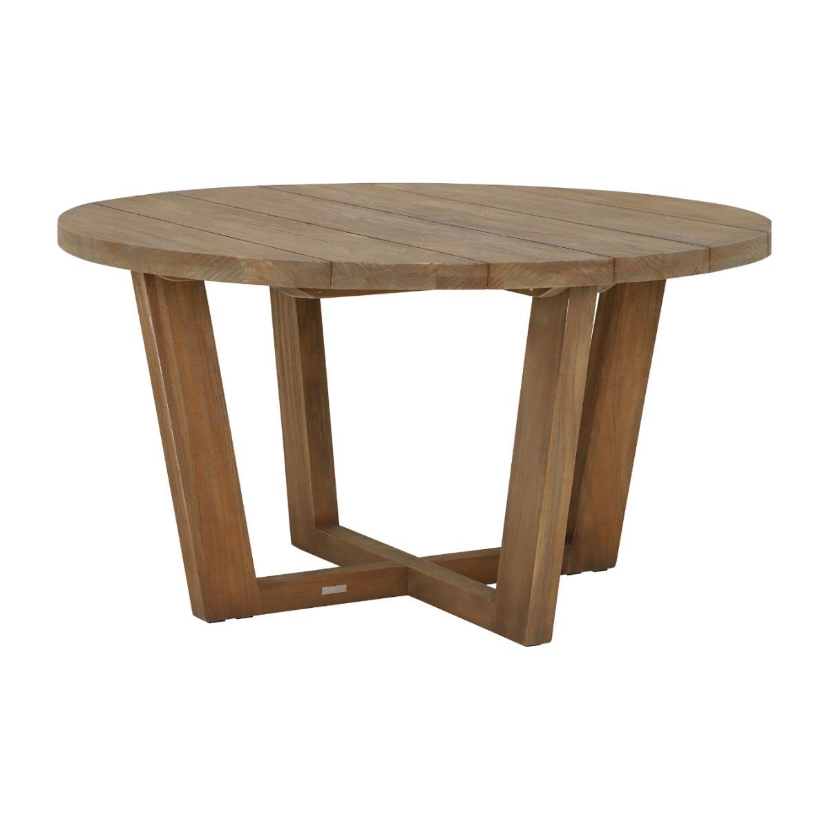 Design. A piece that was made to look perfect in a wide range of outdoor spaces, the Rhodes Round Garden Dining Table has a rustic feel that will transform your garden into a summer haven. Angular legs support a sturdy planked surface for you to wine and dine all summer long.