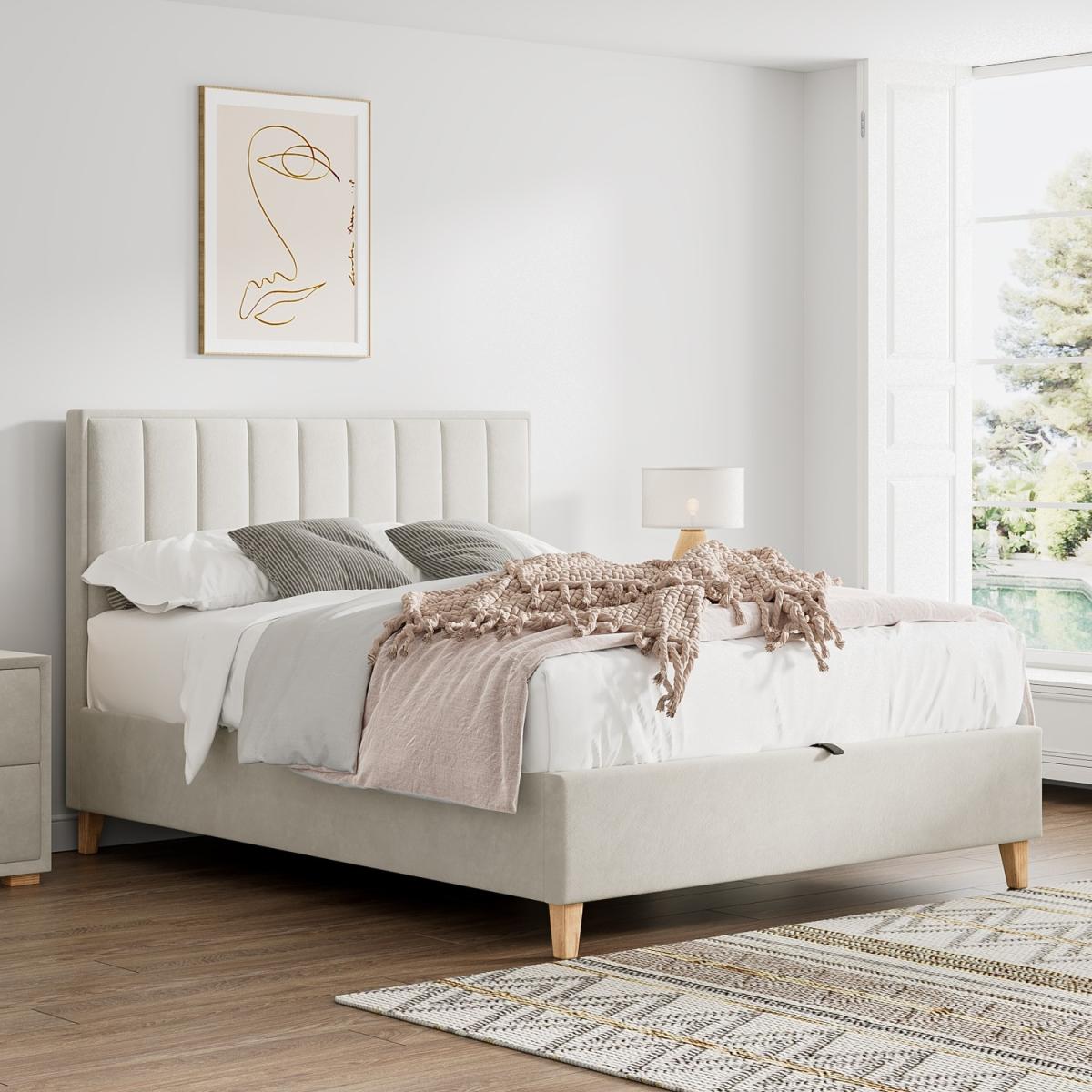 Rhodes Velvet Storage Ottoman Bed - Natural / King