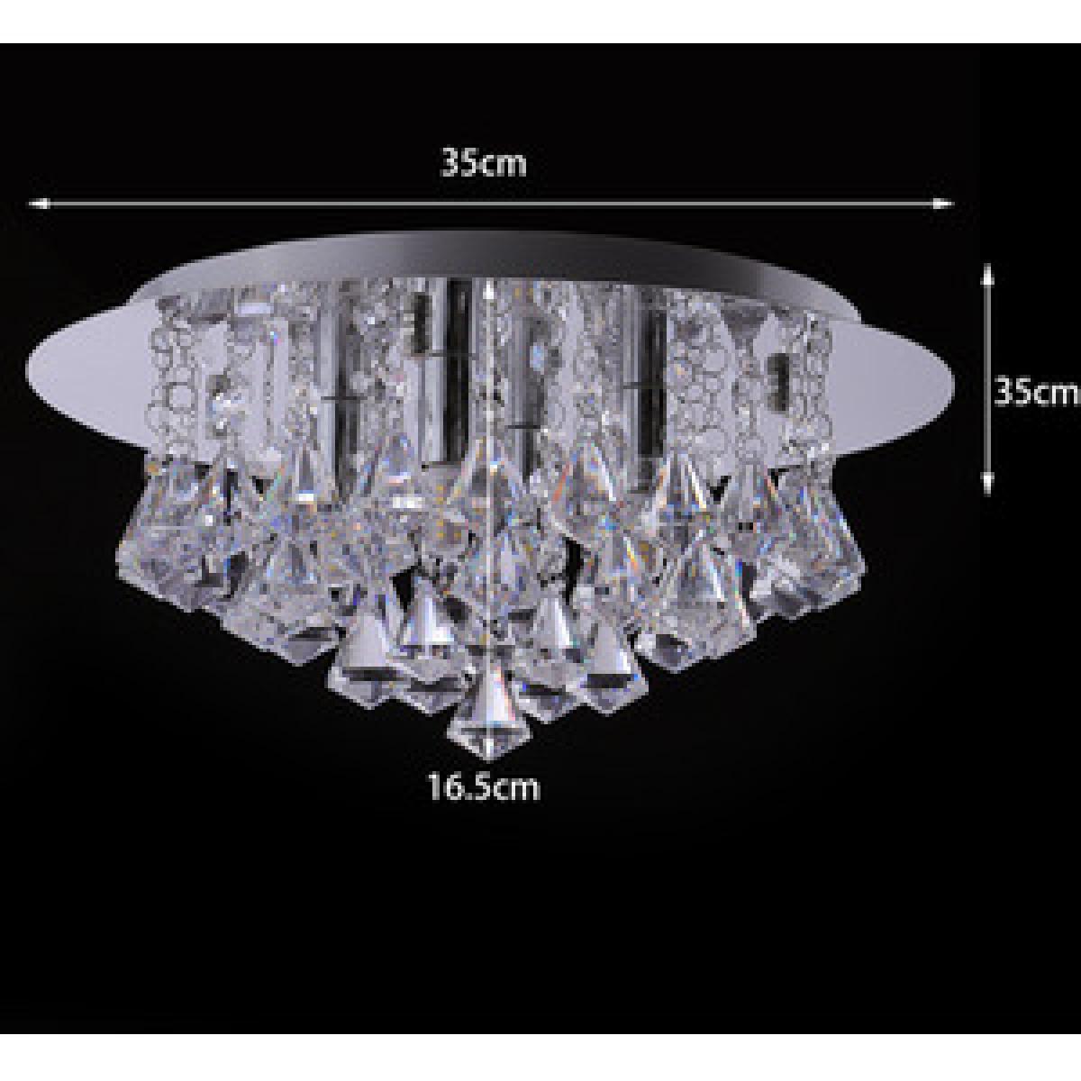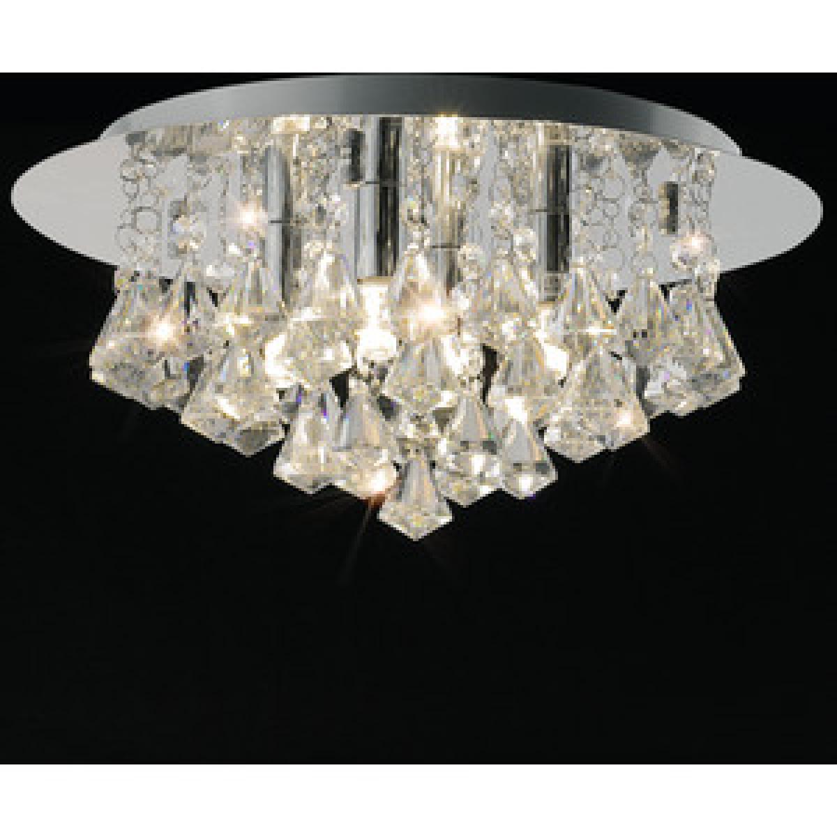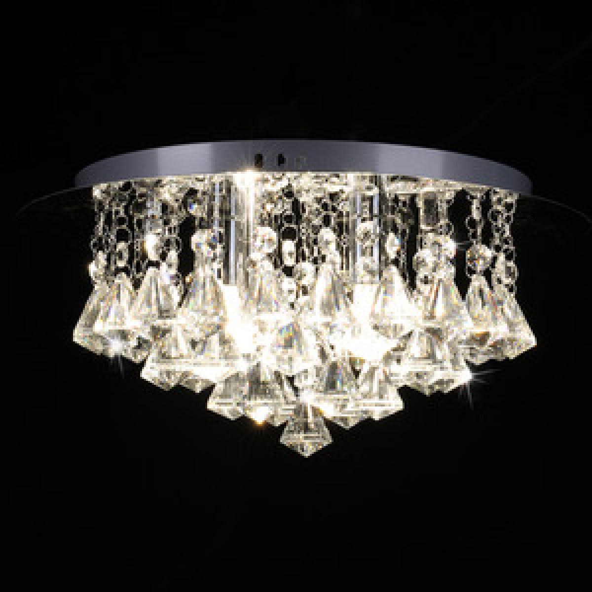 This semi flush is what you want. The glittering crystal is perfectly complemented by the mirror-like chrome detailing, making it a brilliant piece of addition. It's even more marvellous when turned on, it catches the light wonderfully and the refraction from the crystal will cast a heaven-like illumination in your room.
