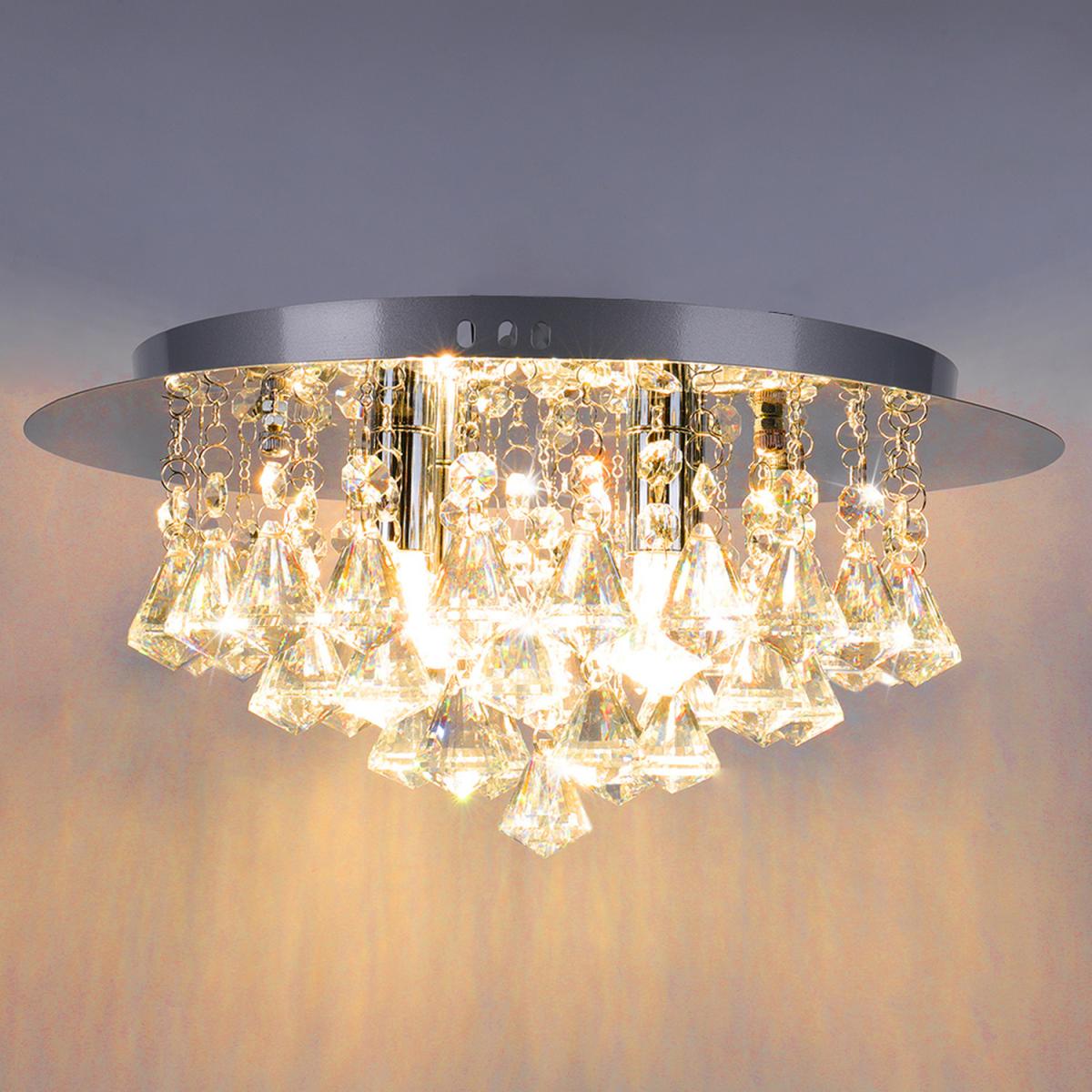 I really like this one for adding a touch of glamour to both modern and traditional interiors. The semi-flush design makes it ideal for rooms with standard ceiling heights, offering a stylish focal point without overwhelming the space. The silver finish lends a sleek, contemporary vibe, while the faceted crystals reflect light beautifully, making it perfect for creating atmosphere and enhancing brightness. Style it in a living area or entrance hall for a sophisticated look, and consider pairing with neutral tones to let the light and crystals do the talking. Practical tip: keep the surroundings relatively minimal to really let the sparkle shine and avoid a cluttered feel.