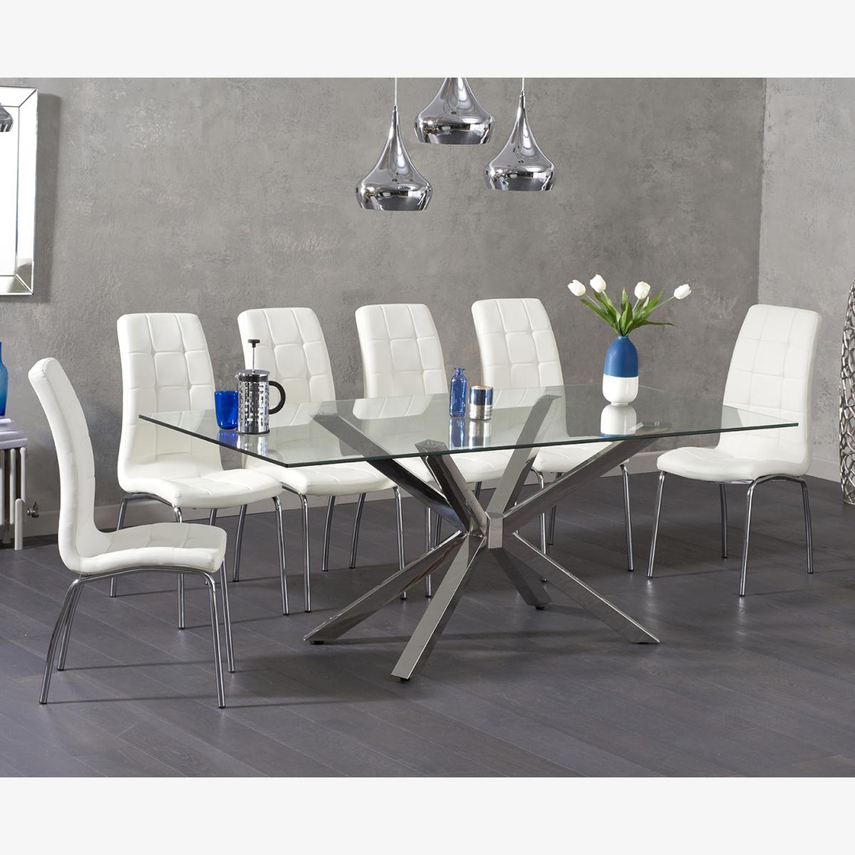 Rhone 200cm Glass Dining Table With 8 Black Calgary Chairs