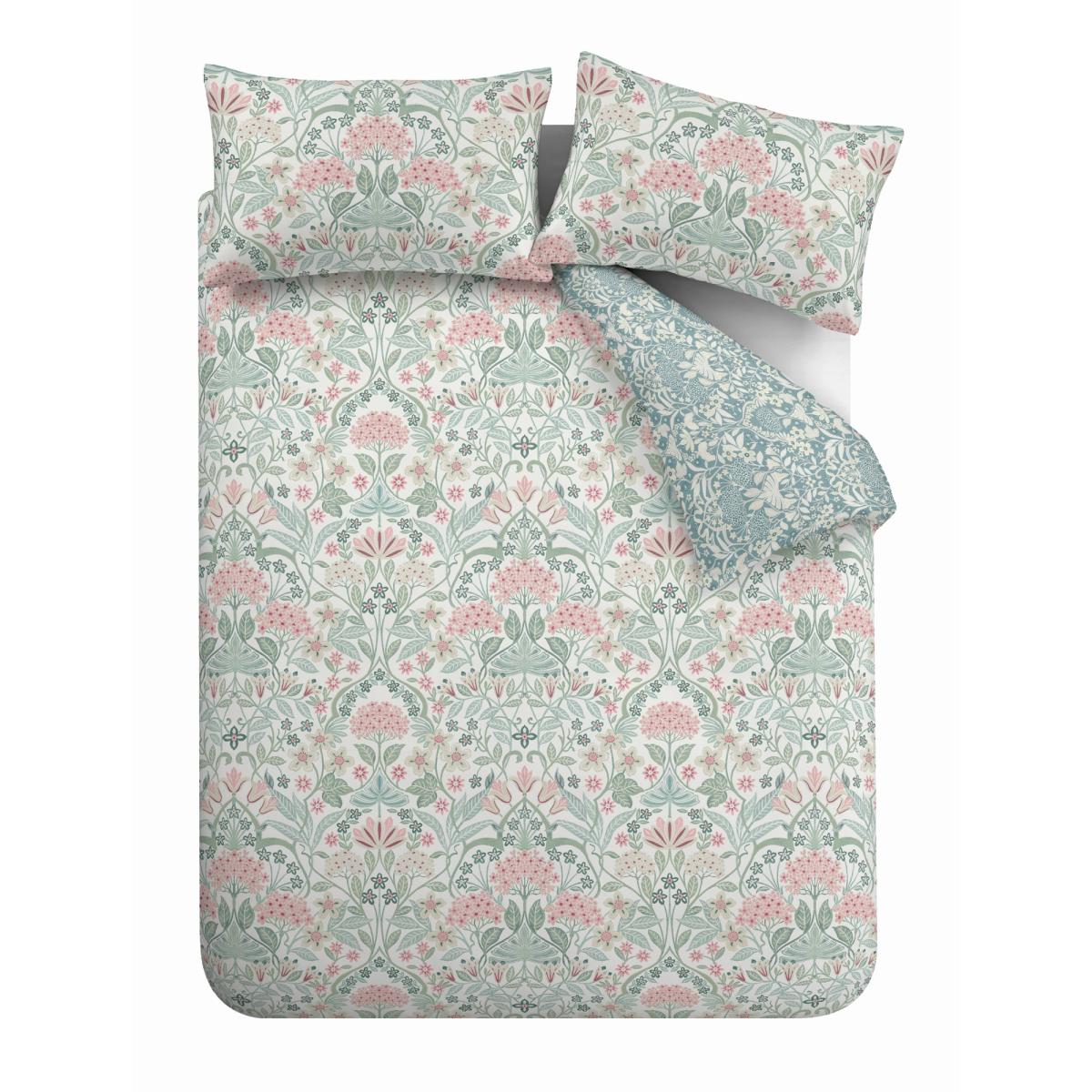 RHS Art Deco Hydrangea Duvet Cover Set - Super King In GreenPink