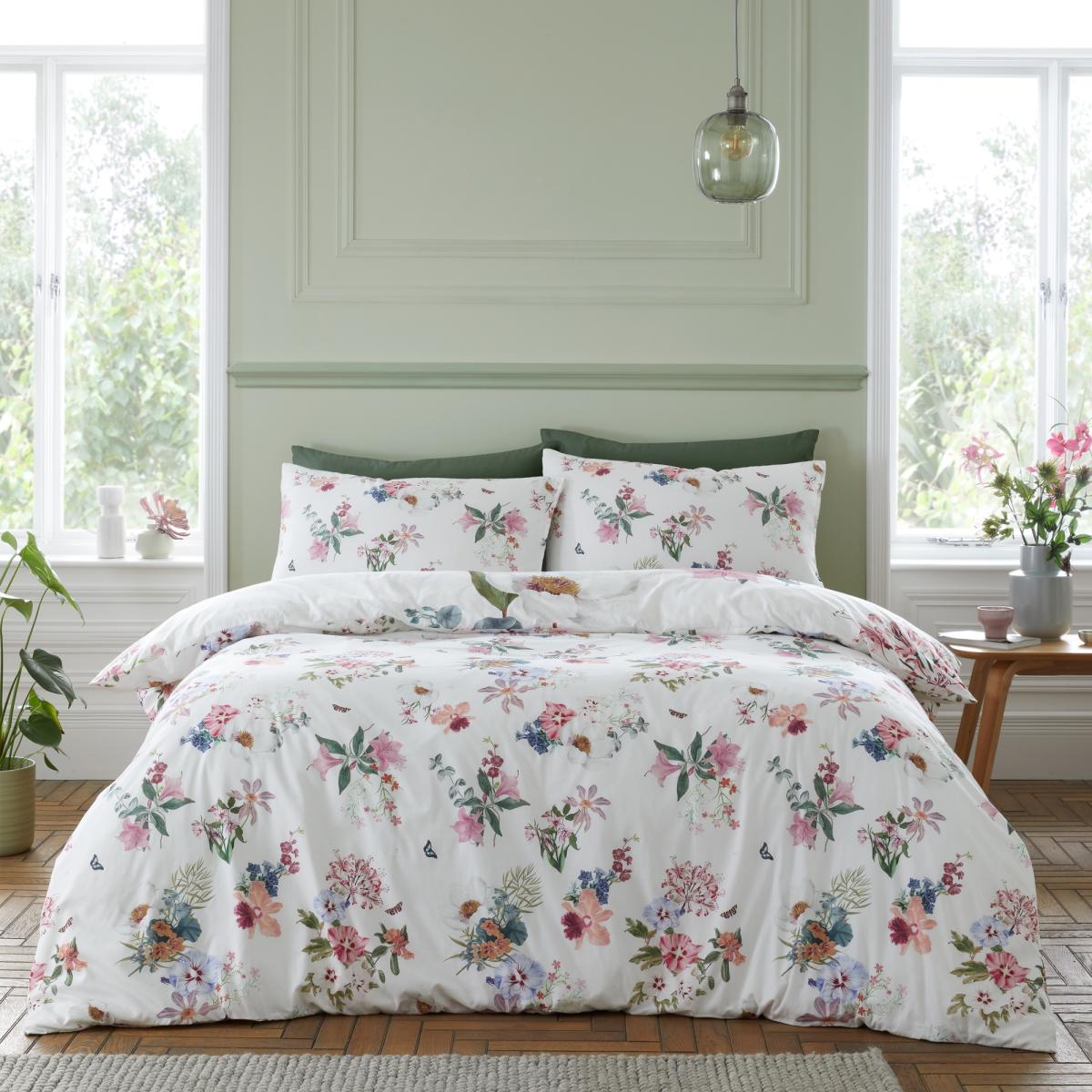 Transform your bedroom into a botanical paradise with the RHS Exotic Garden Duvet Cover Set.. Vibrant blooms, lush foliage, and distinctive plants come to life on this captivating design. Crafted from soft, 200-thread-count cotton sourced responsibly and woven in a breathable percale weave, this striking ensemble adds bursts of color and texture to your sleep space. Experience the beauty of nature every night with this vibrant and luxurious bedding. Features !00 % Cotton Percale 200 Thread Count: Fully Reversible Button Fastening: Single Duvet Includes Single Pillowcase Double, King and Superking Size Duvet Set Includes Pair of Pillowcases Care Instructions Wash Before Use. Machine Wash at 40 Degrees. Tumble Dry Safe. Please note All screens vary in colour reproduction and whilst every effort has been made to display the colour as accurately as possible it is for guidance only.