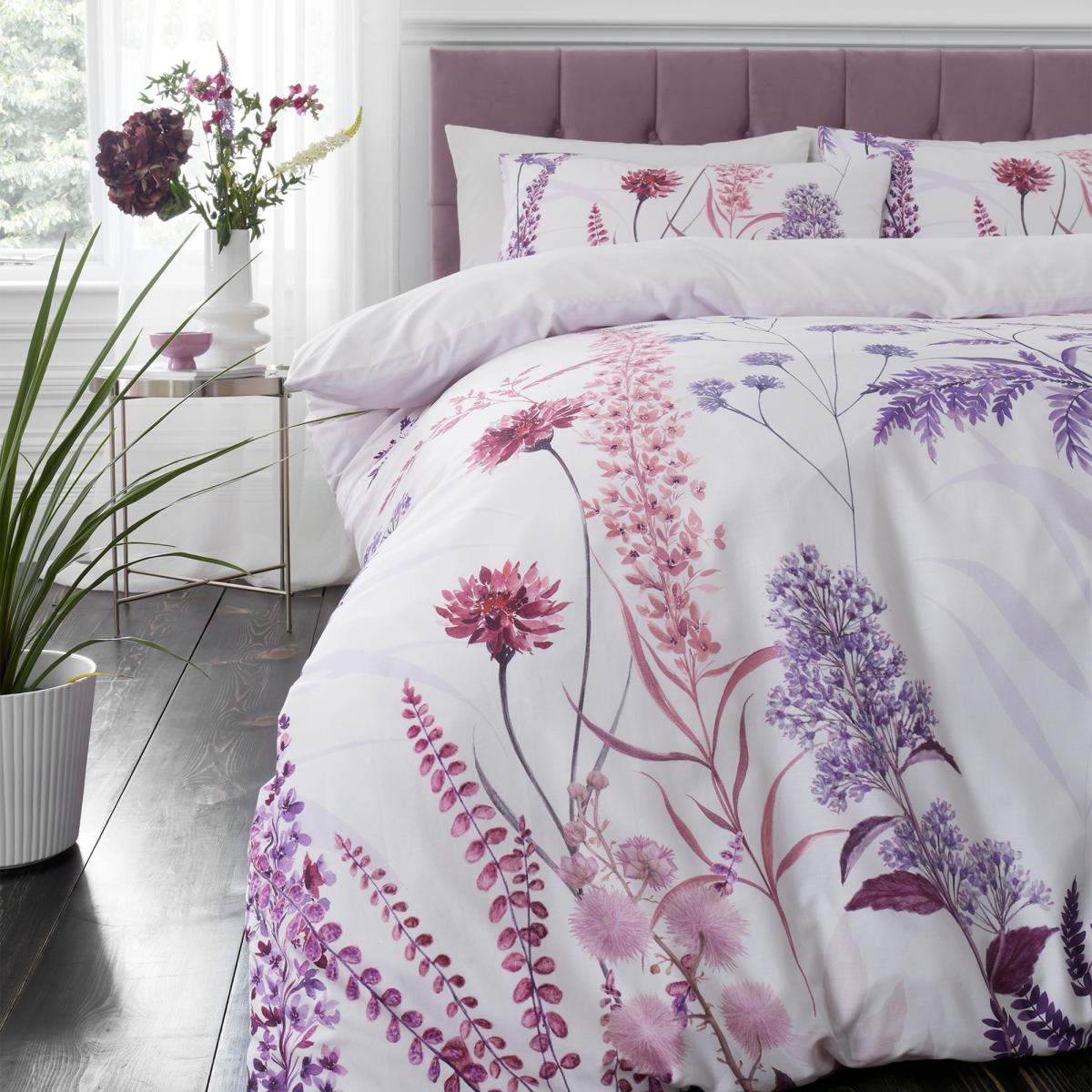 Indulge in the serene beauty of nature with the RHS Meadow Haze Duvet Cover Set, inspired by nature's canvas. Delicately adorned with a symphony of wildflowers and gracefully swaying grasses against soft lilac hues, this design evokes a sense of tranquility and natural allure. Crafted from soft, responsibly sourced cotton with a luxurious 200-thread-count and a breathable percale weave, this bedding ensures both comfort and quality. Complete with a tonal reverse, this bed linen set will infuse your space with a calming ambiance and timeless natural beauty. Features 200 Thread Count 100% Cotton Percale Reversible Single Duvet Includes Single Pillowcase Double, King and Superking Size Duvet Set Includes Pair of Pillowcases Care Instructions: Machine washable Please note All screens vary in colour reproduction and whilst every effort has been made to display the colour as accurately as possible it is for guidance only.