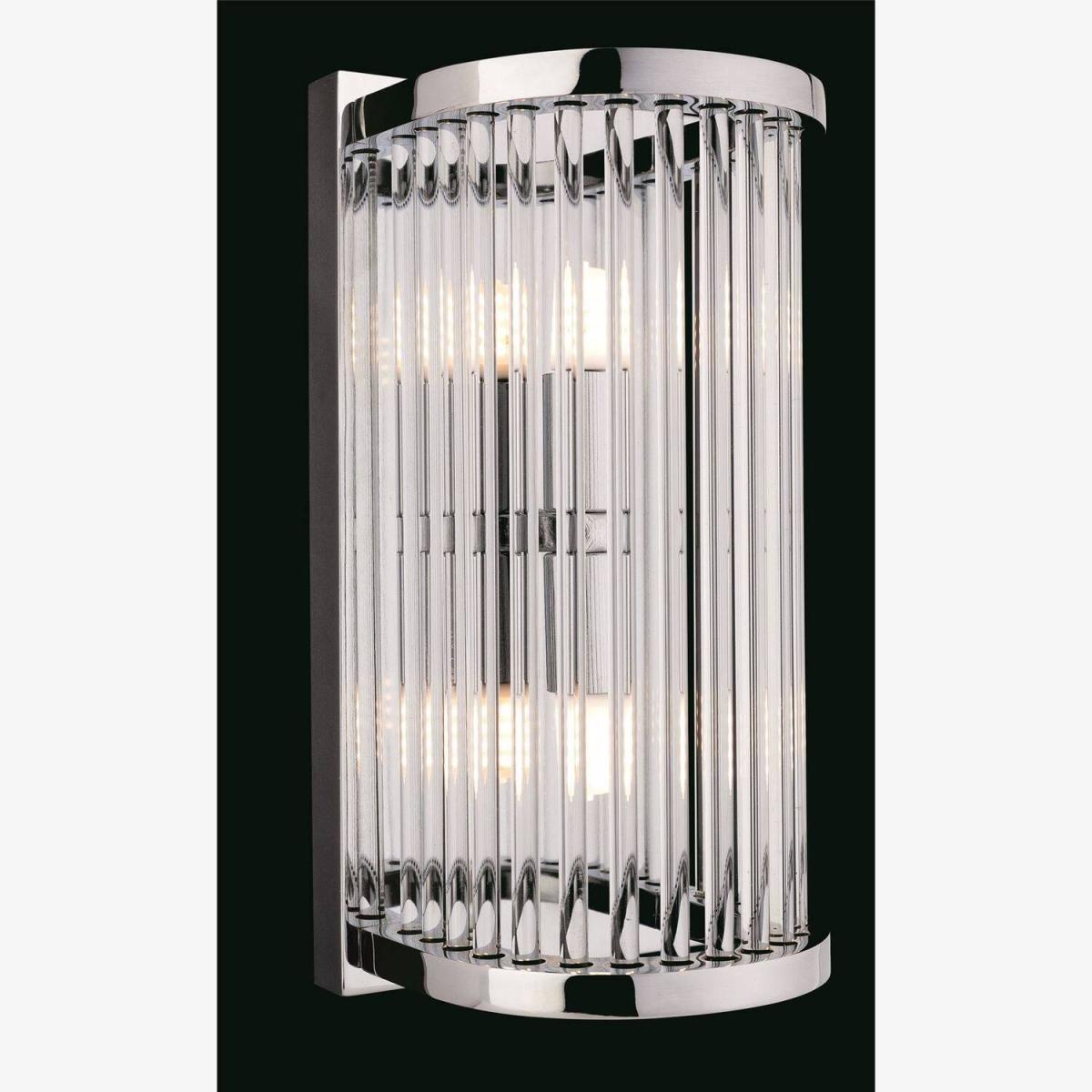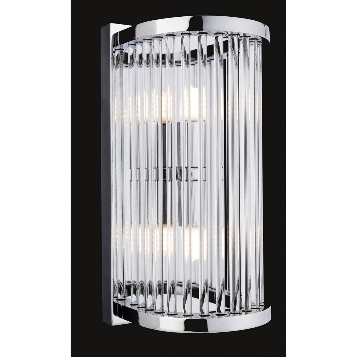 Enjoy glamour inspired by Hollywood glamour days with the Rialto 2-Light Chrome and Clear Glass Rods Wall Light. Its angular style, clean look and sparkling glass rods are a wonderful way to bring style and beautiful illumination to your decorating aesthetic.