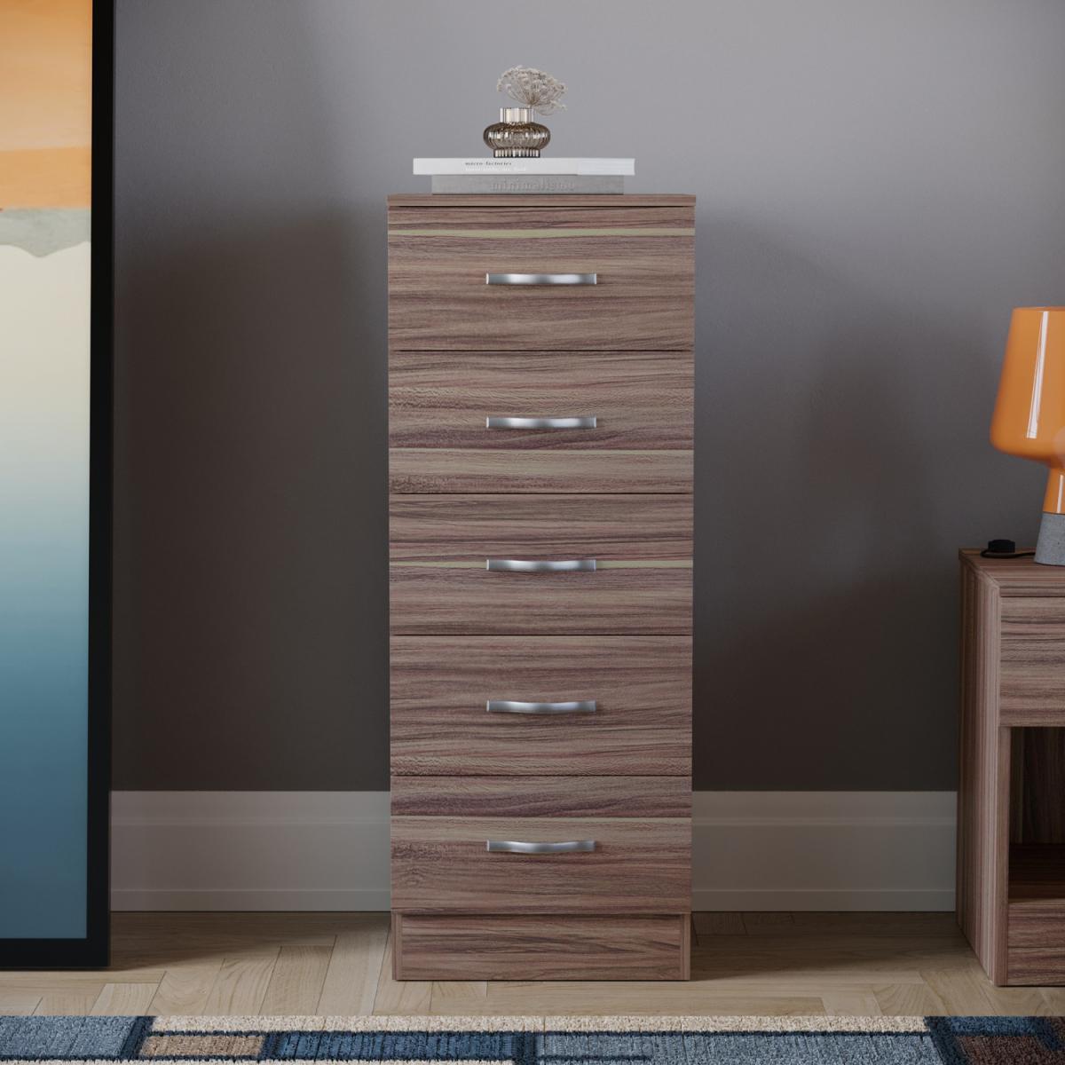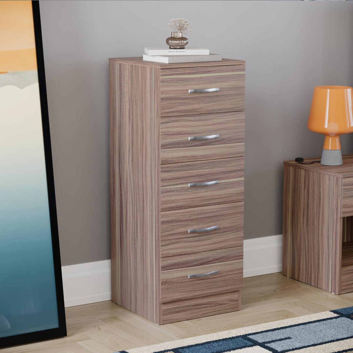 Riano 5 Drawer Narrow Chest of Drawers - Walnut