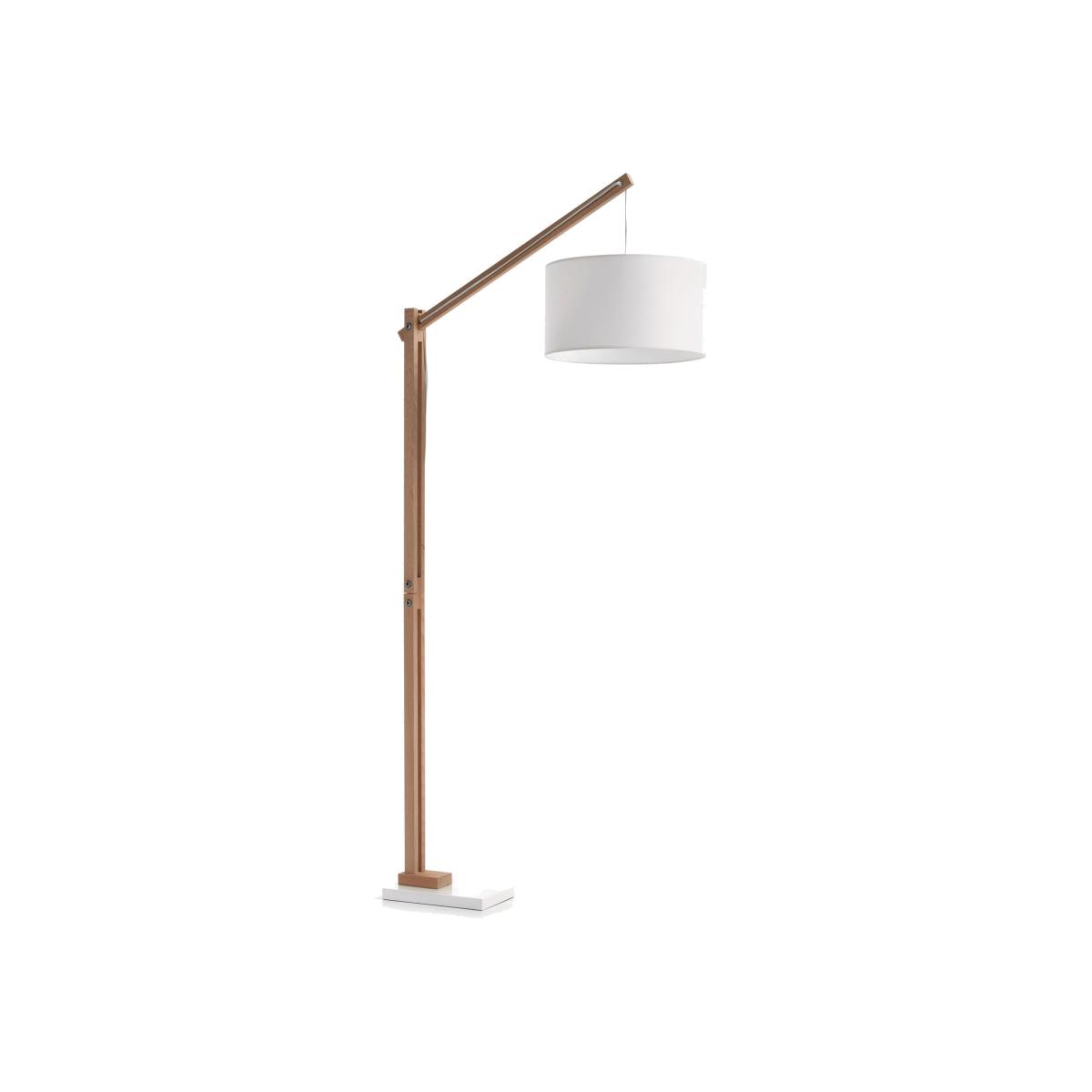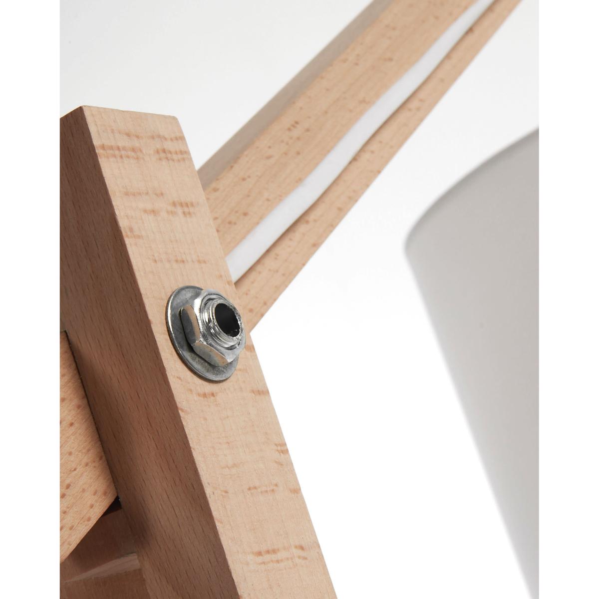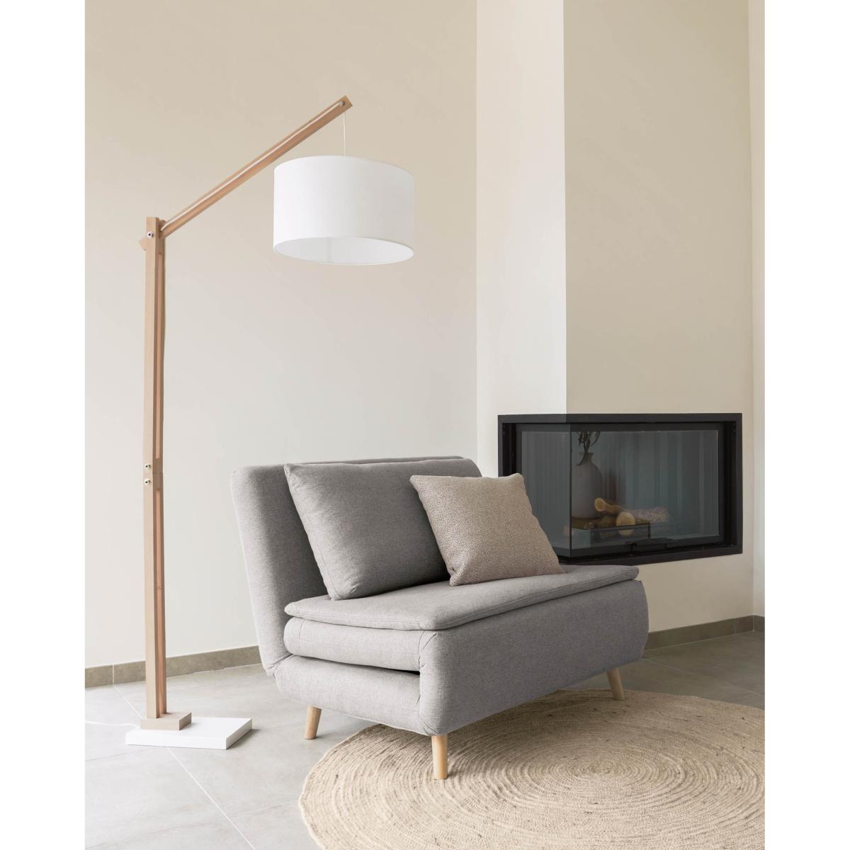 Riaz floor lamp in solid beech wood with white lampshade, UK adaptor