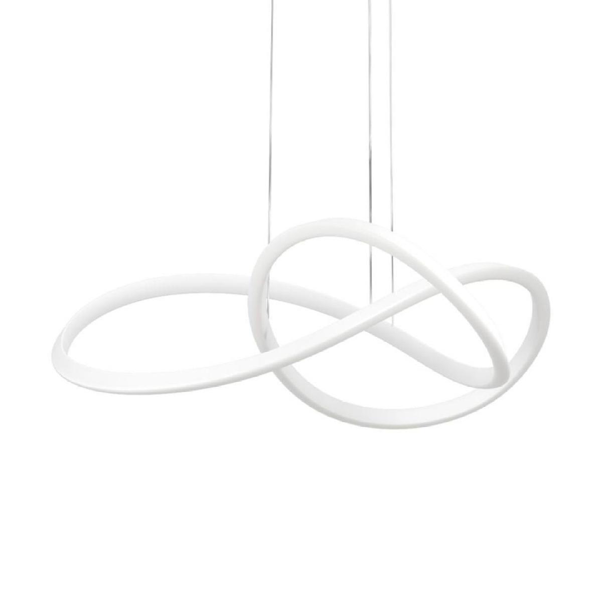 Riaza LED ceiling pendant, featuring a matte white finish. The Riaza LED pendant blends modern minimalism with sculptural elegance, creating a striking centrepiece for contemporary interiors. Finished in smooth matte white, its flowing twist design offers a fresh, artistic take on pendant lighting. Integrated LEDs provide bright, tuneable white light, allowing you to adjust the tone from warm to cool to suit your mood or setting. Suspended from adjustable cables, the drop can be customised to fit perfectly above dining tables, kitchen islands or open living spaces. Combining clean lines with cutting-edge functionality, the Riaza pendant delivers style and versatility in equal measure.