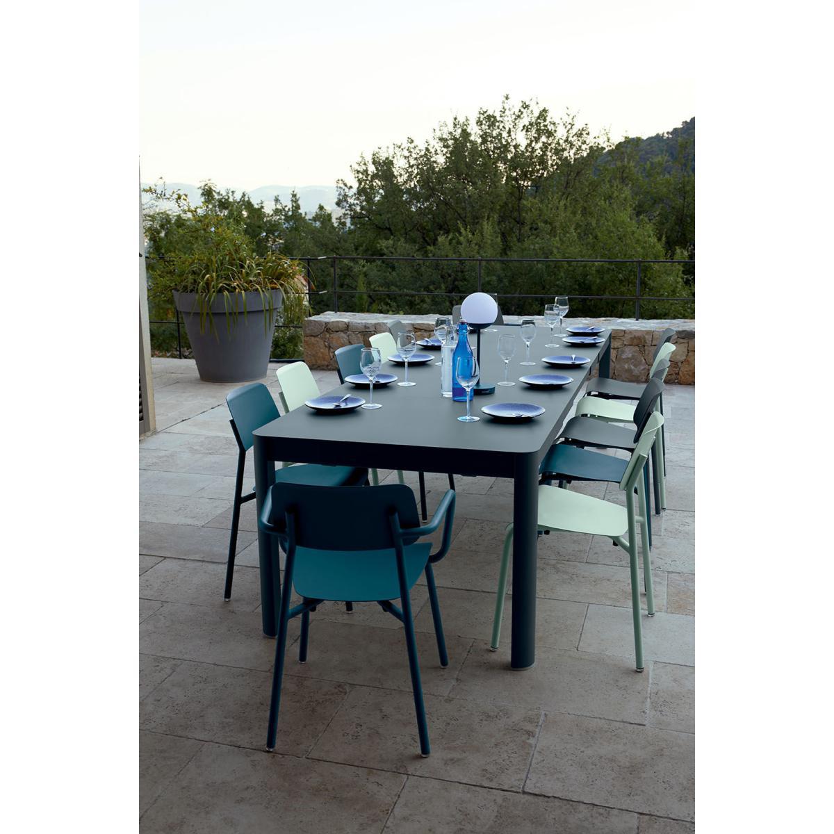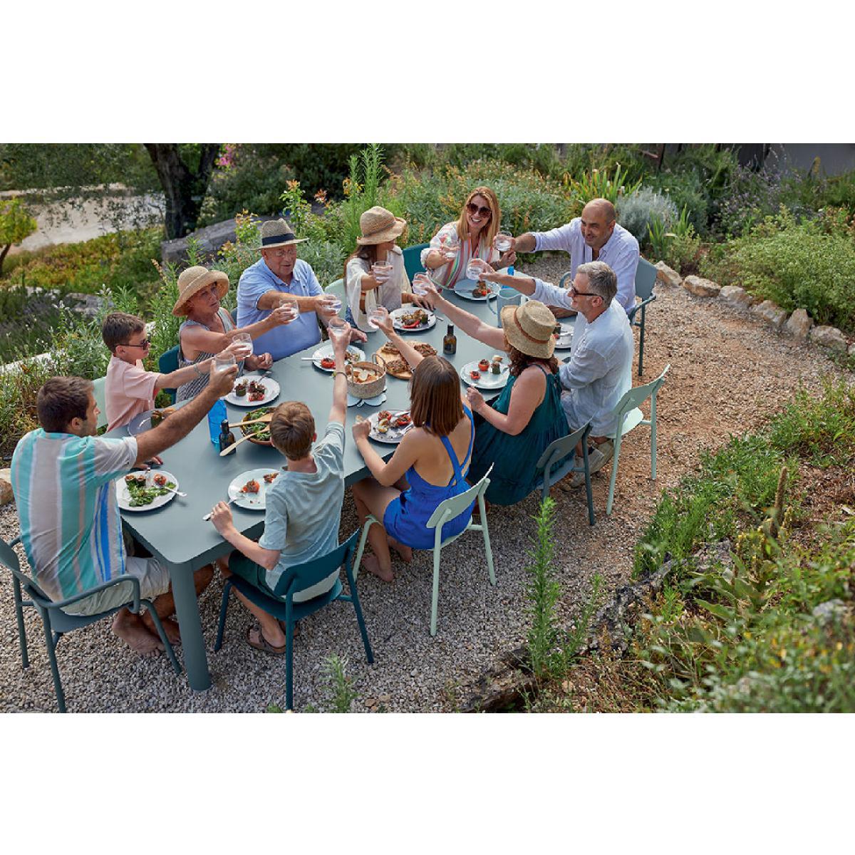 Ribambelle is an ample extending table in the XXL size. It is robust, practical and adjustable. Made completely from aluminium, it is happy both outdoors and inside. Able to accommodate up to 14 people, it will be the ideal partner to enjoy moments together among friends or family. The 3 central extension leafs are completely built into the structure of the table for perfect aesthetics. Thanks to a telescopic system on bearings, extending becomes simple and fluid. When they’re not being used, the extension leaves disappear discretely, cleverly stored in a storage box located under the top. With its timeless, clean design, Ribambelle fits into all styles and combines with any Fermob chairs. Combine the shapes and colours to give it all a dynamic, unique appeal! Made using a process and technology which meets the highest requirements in terms of quality, Fermob products are fully conceived in the spirit of Made in France and that is nowhere more evident than the location of the factory in Thoissey.