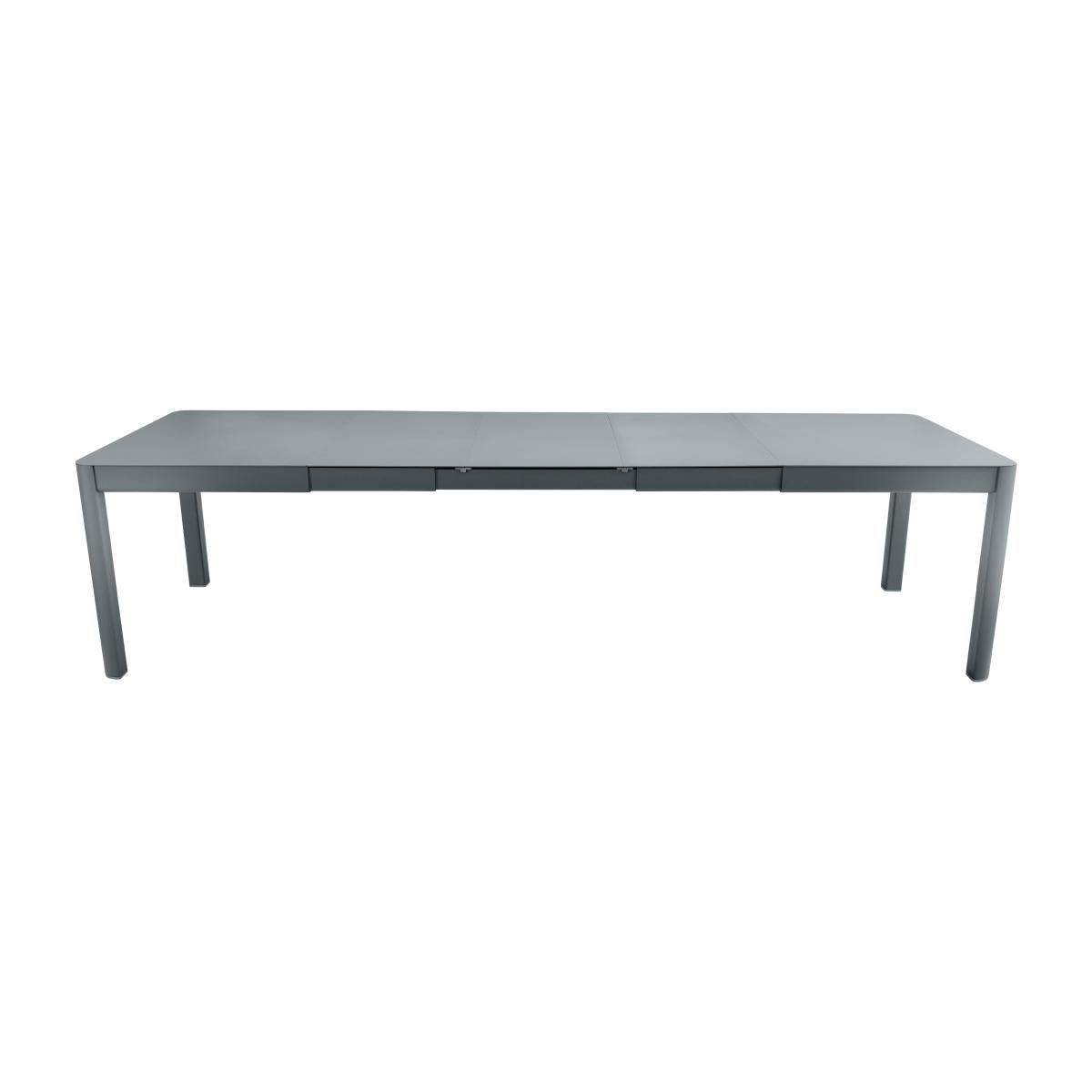 Ribambelle is an ample extending table in the XXL size. It is robust, practical and adjustable. Made completely from aluminium, it is happy both outdoors and inside. Able to accommodate up to 14 people, it will be the ideal partner to enjoy moments together among friends or family. The 3 central extension leafs are completely built into the structure of the table for perfect aesthetics. Thanks to a telescopic system on bearings, extending becomes simple and fluid. When they are not being used, the extension leafs become discrete, sensibly stored in a storage box located under the top. With its timeless and clean design, Ribambelle fits into all styles and combines with any Fermob chairs. Combine the shapes and colours to give it all a dynamic and unique appeal! Made using processes and a technology which meets high requirements in terms of quality, Fermob products are fully Made in France, as shown by the location of the plant in Thoissey.