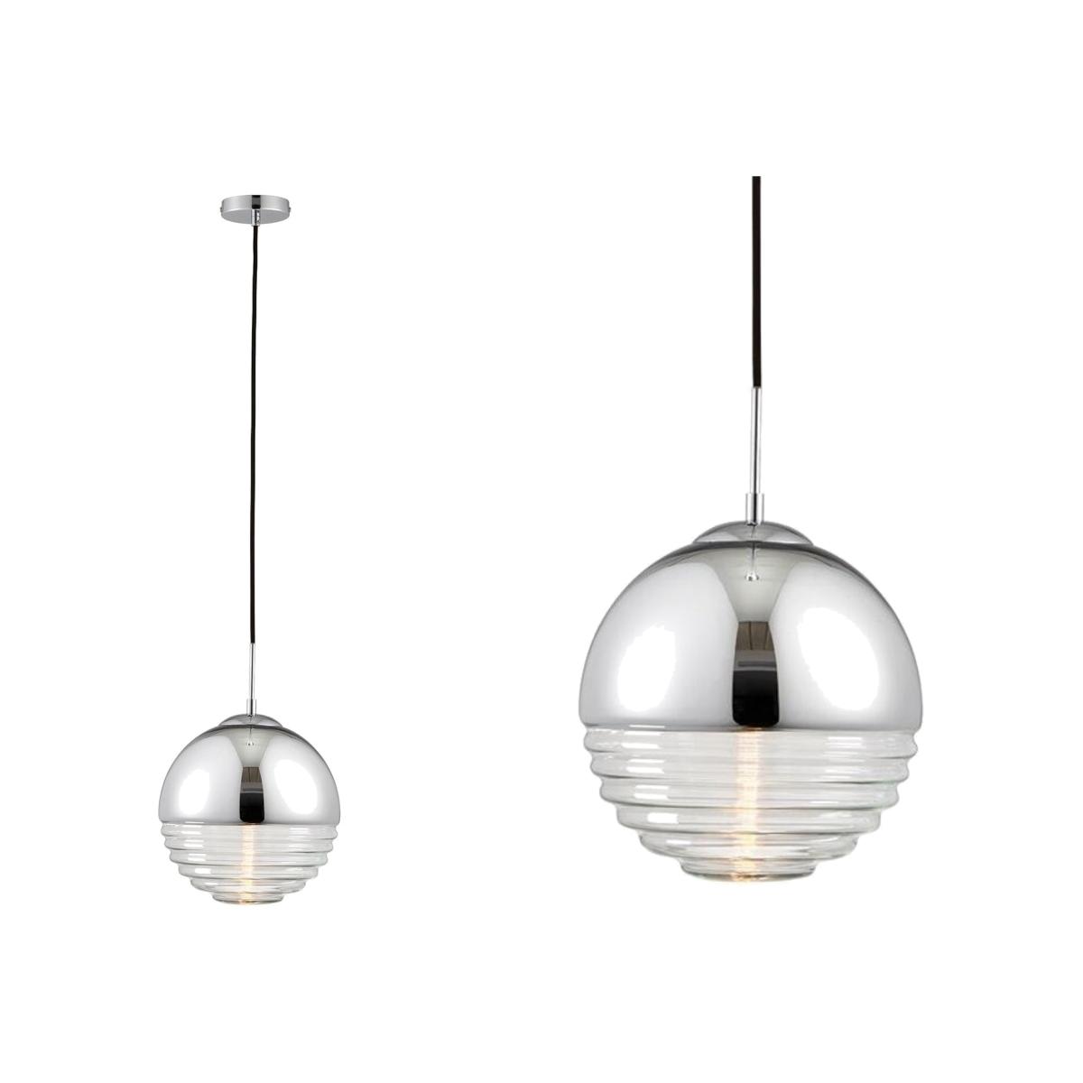 Ribbed Glass & Chrome Ball Pendant Light - Paloma