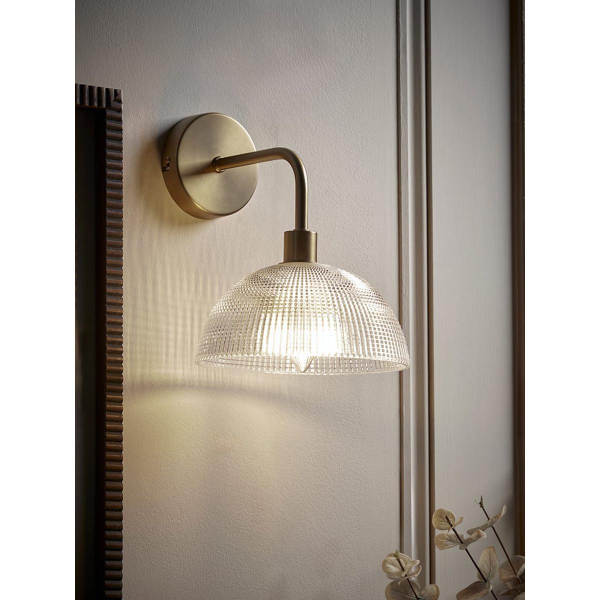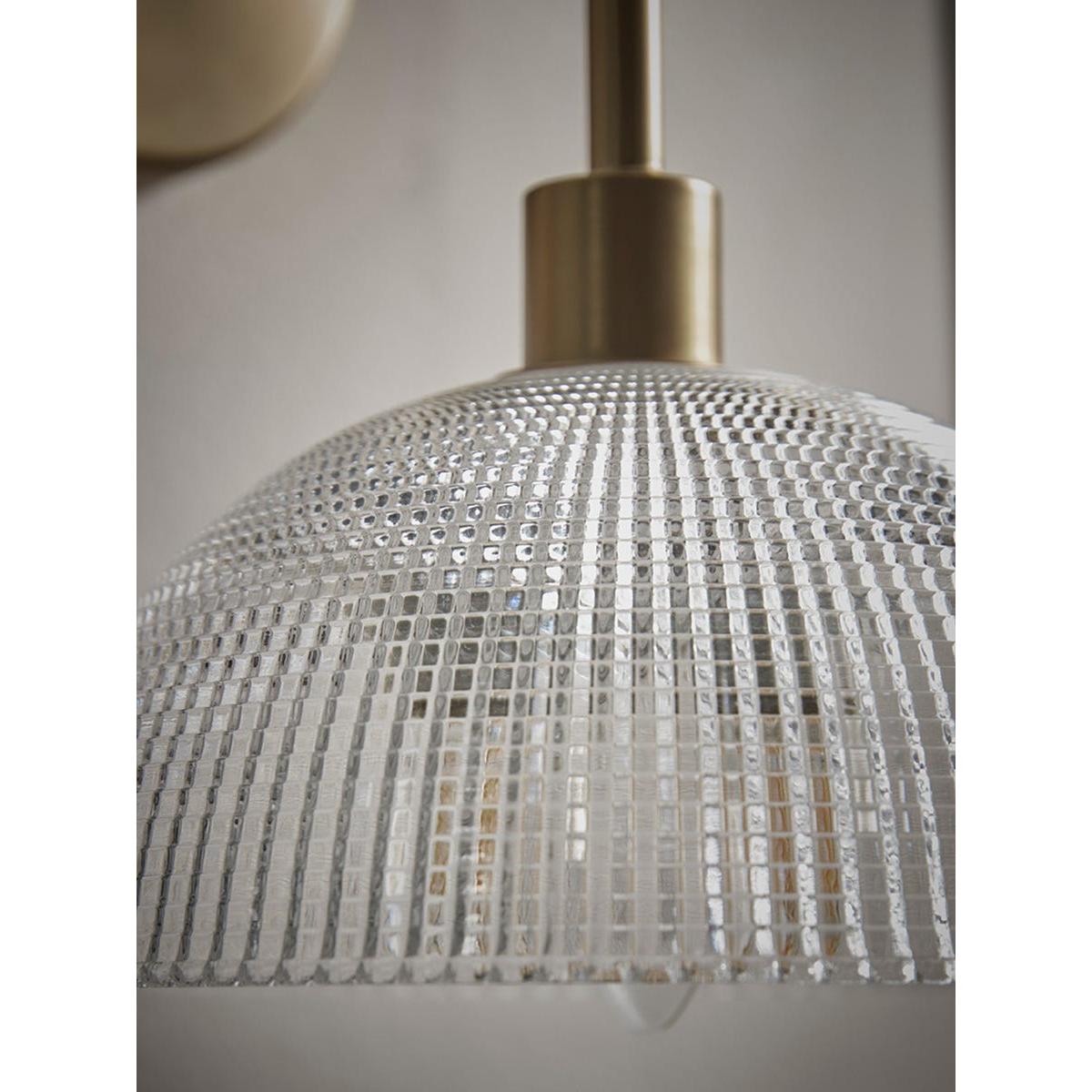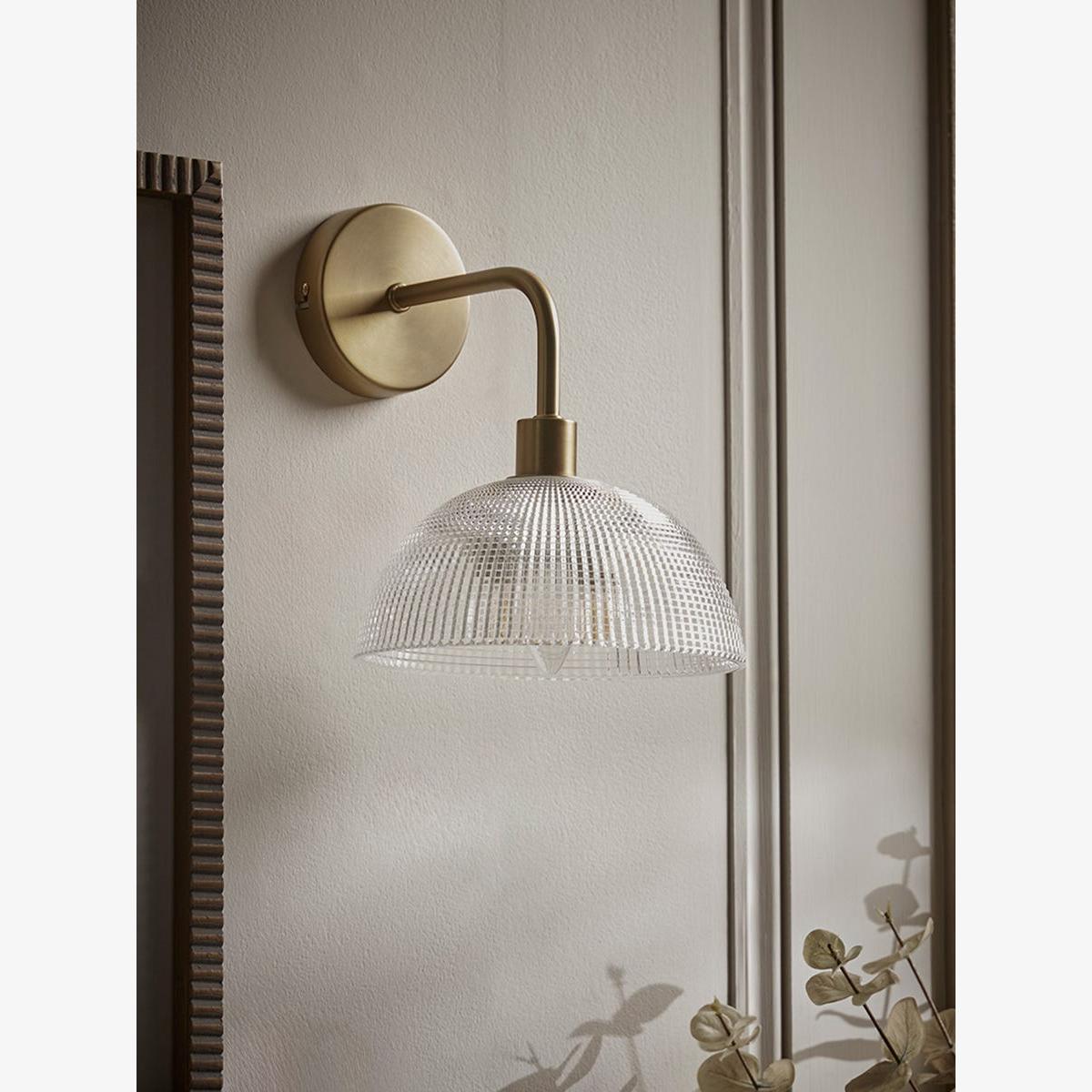 An elegant statement piece to any home, this wall light will cast a beautiful glow across your space. A soft and curvaceous brass arm extends from the wall and adds some warmth to the dimpled glass dome, bringing a touch of glamour and sophistication to your home.  Discover how to create the perfect lighting scheme for your home using our Lighting Buying Guide.