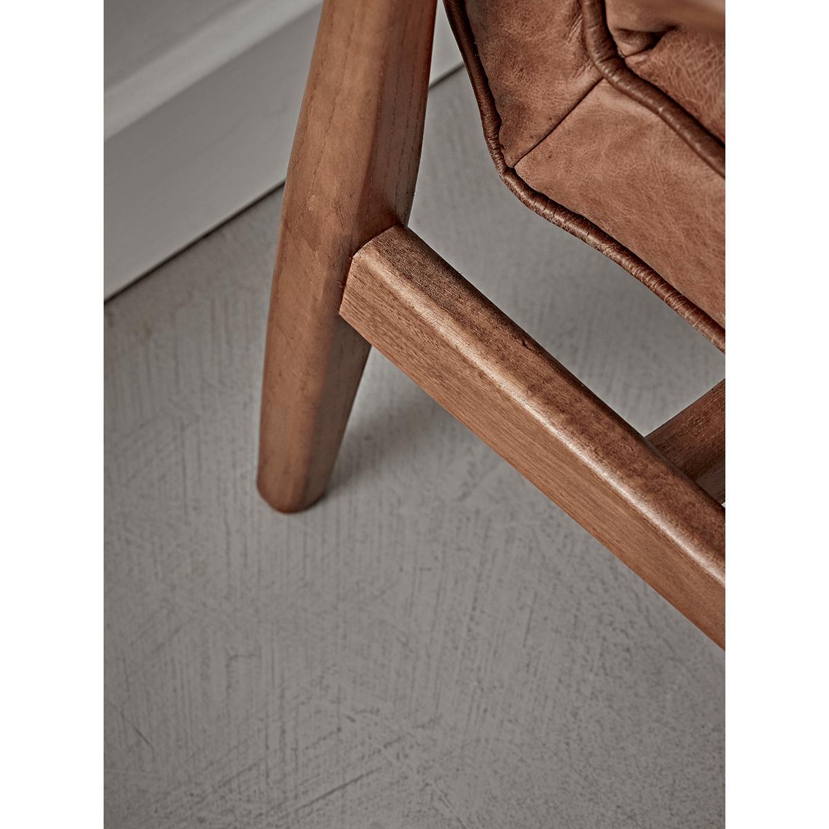 Sit back in style in our mid century style armchair, complete with a classically designed ash frame and rich tan leather upholstery. Each chair features a beautiful ribbed detail to both the seat and backrest.