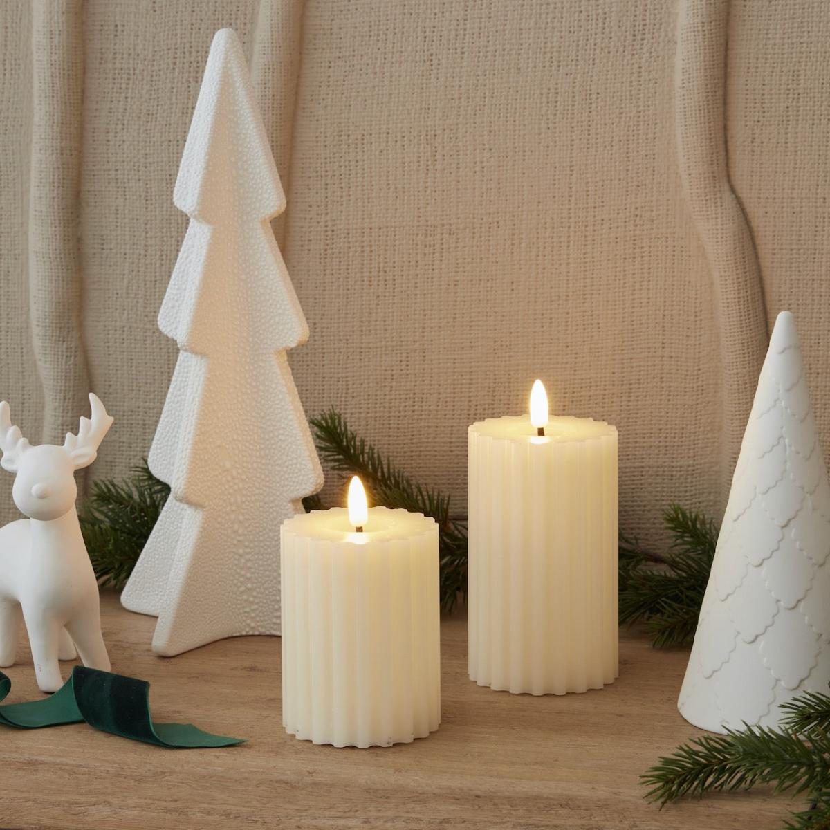 These ribbed LED candles are a stylish way to brighten up your home this Christmas and create a lovely ambiance. Place on your console table or pillar candle holder or style in your lantern. Show here are the small and medium sized.