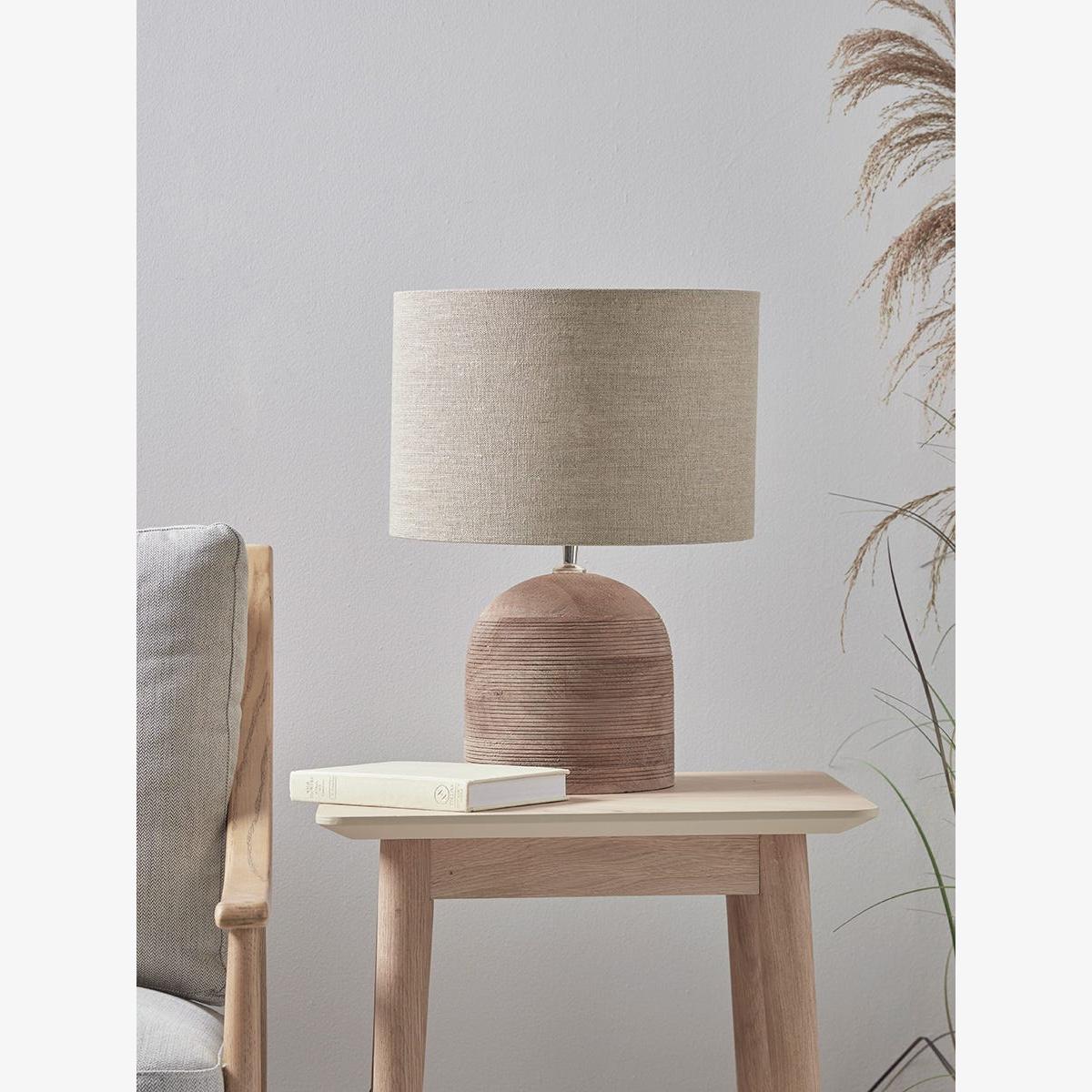 Brimming with natural texture, this table lamp has a dome shaped base with a carved ribbed design running around it. Made from richly toned mango wood, the base is paired with a natural linen shade in a complementary neutral. Discover how to create the perfect lighting scheme for your home using our Lighting Buying Guide.