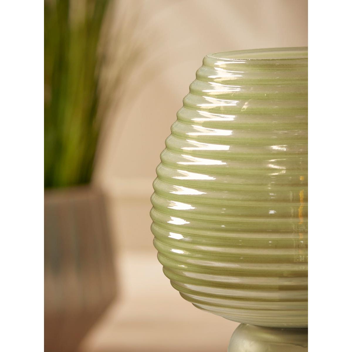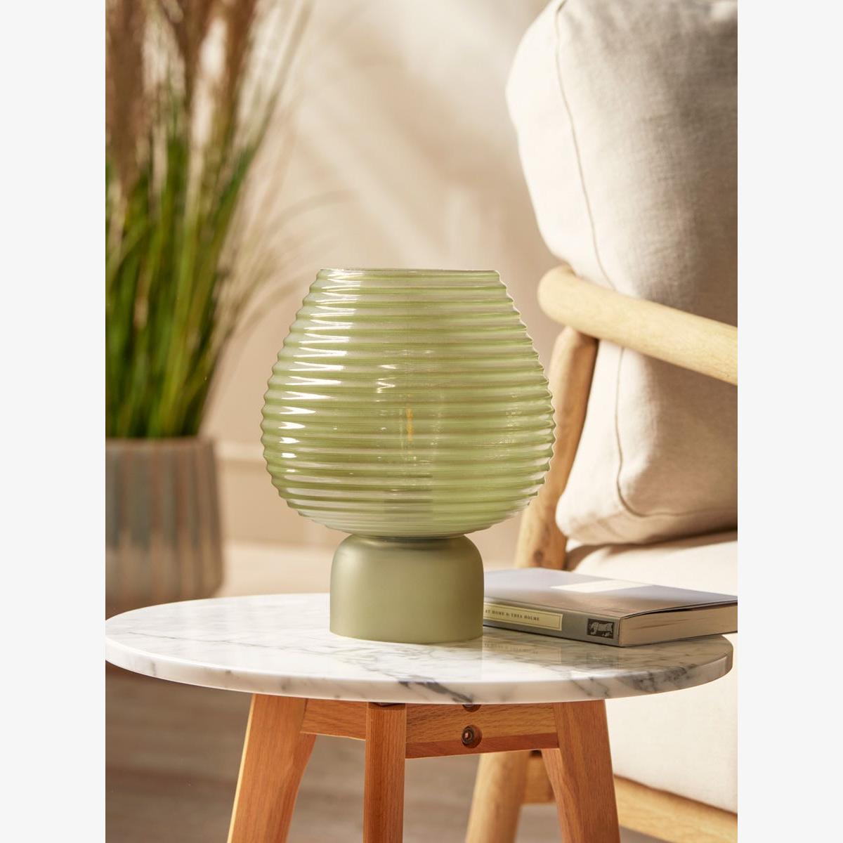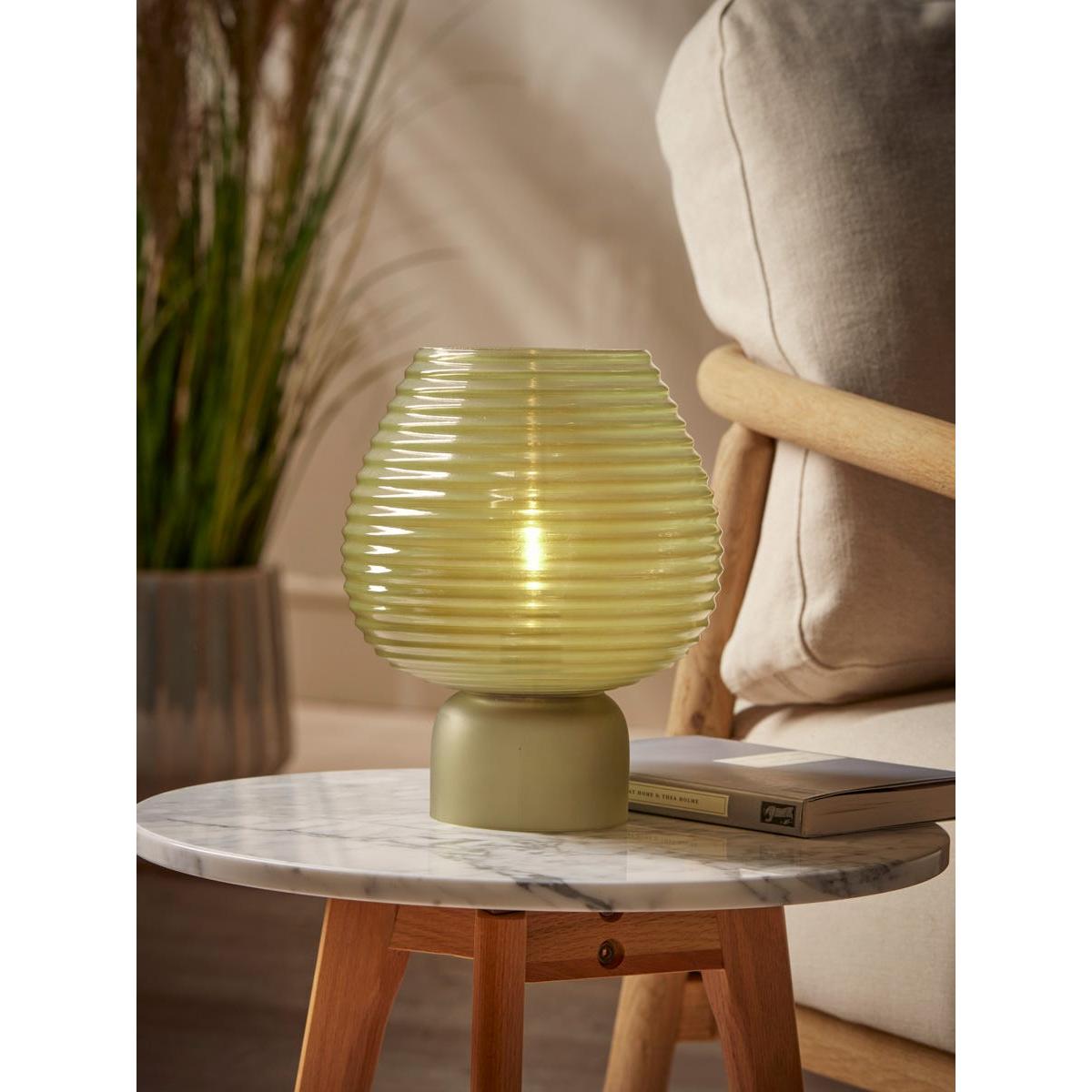 Add a gentle glow to your home with this glass lamp. Its soft ribbed design pairs wonderfully with the light and earthy tones, adding a modern elegance to your space. Its cordless feature means it can be placed anywhere, even when theres no mains power, to light each and every corner of your home beautifully.