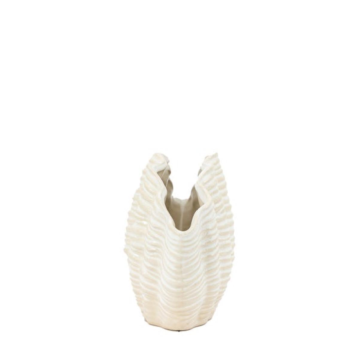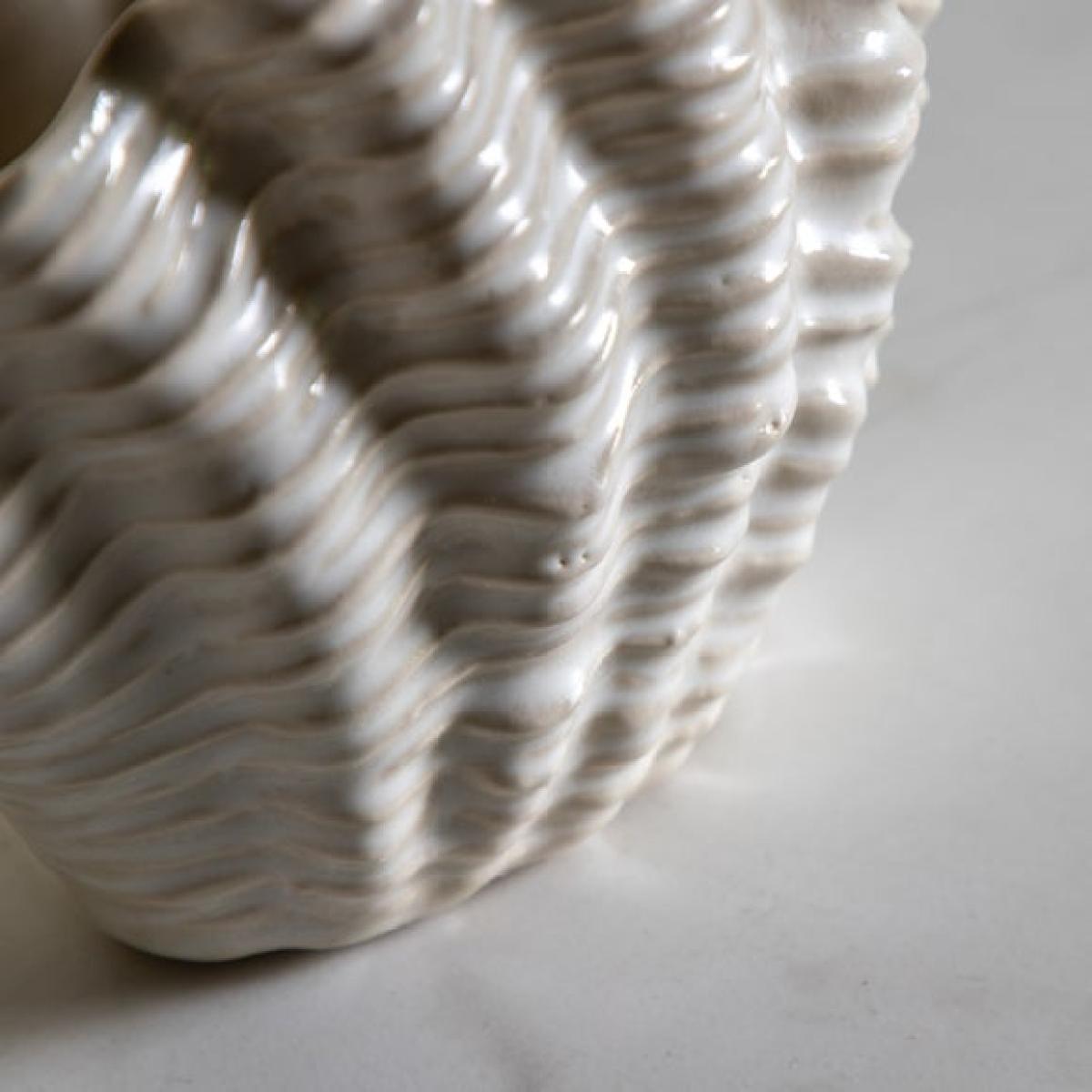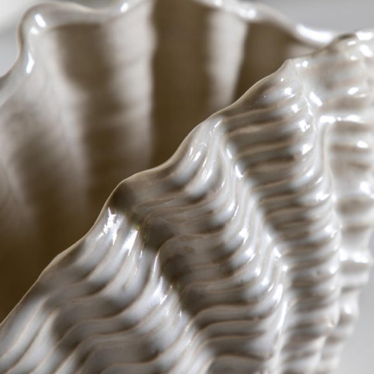 * Ribbed Design * Fluted Seashell Details * Ideal for Displaying Florals Bring the seaside to your home with the Ribbed Shell Ceramic Vase. Featuring a white reactive glaze and fluted seashell details, this is the perfect statement piece for displaying your favourite florals. Please Note: This vase is not 100% waterproof.