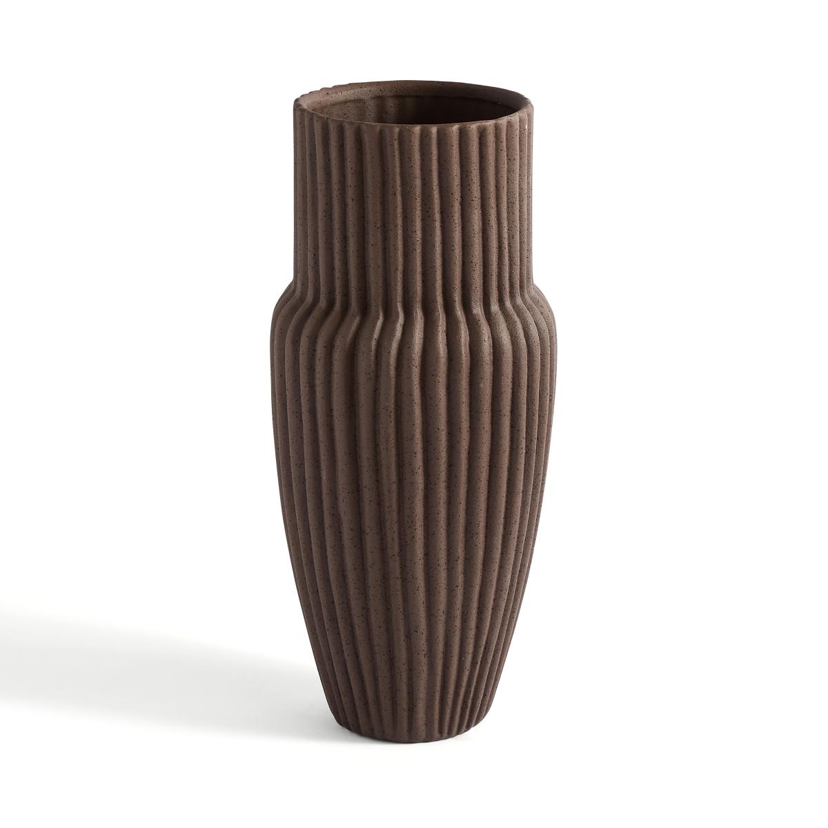 Ribbed Stone Vase Bitter Chocolate (Brown)