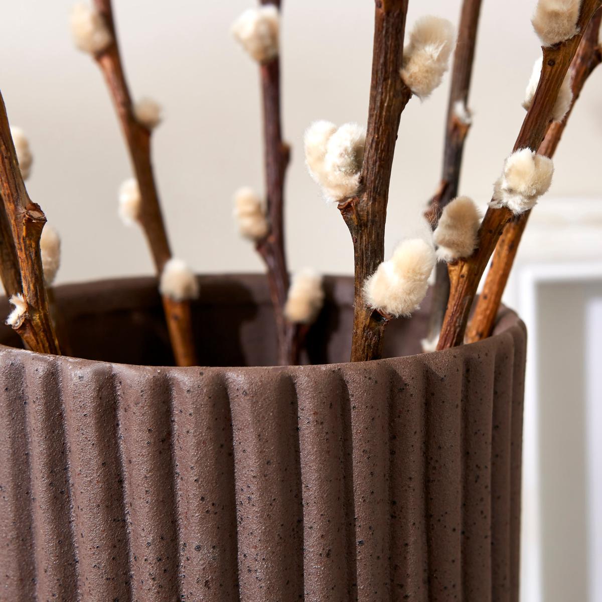 I really like this stone vase in bittersweet chocolate - it adds a rich, earthy touch that works well in both modern and rustic interiors. Its ribbed texture lends visual interest without overwhelming the space, making it a versatile piece for different settings. I’d suggest pairing it with dried palm leaves or minimalist greenery for a contemporary look, or with fresh blooms for a more lively vibe. It’s also lovely placed on a sideboard or mantelpiece as a standalone decorative piece. To keep its strength in focus, avoid overcrowding, and consider placing it in natural light to highlight the texture and deep hue.