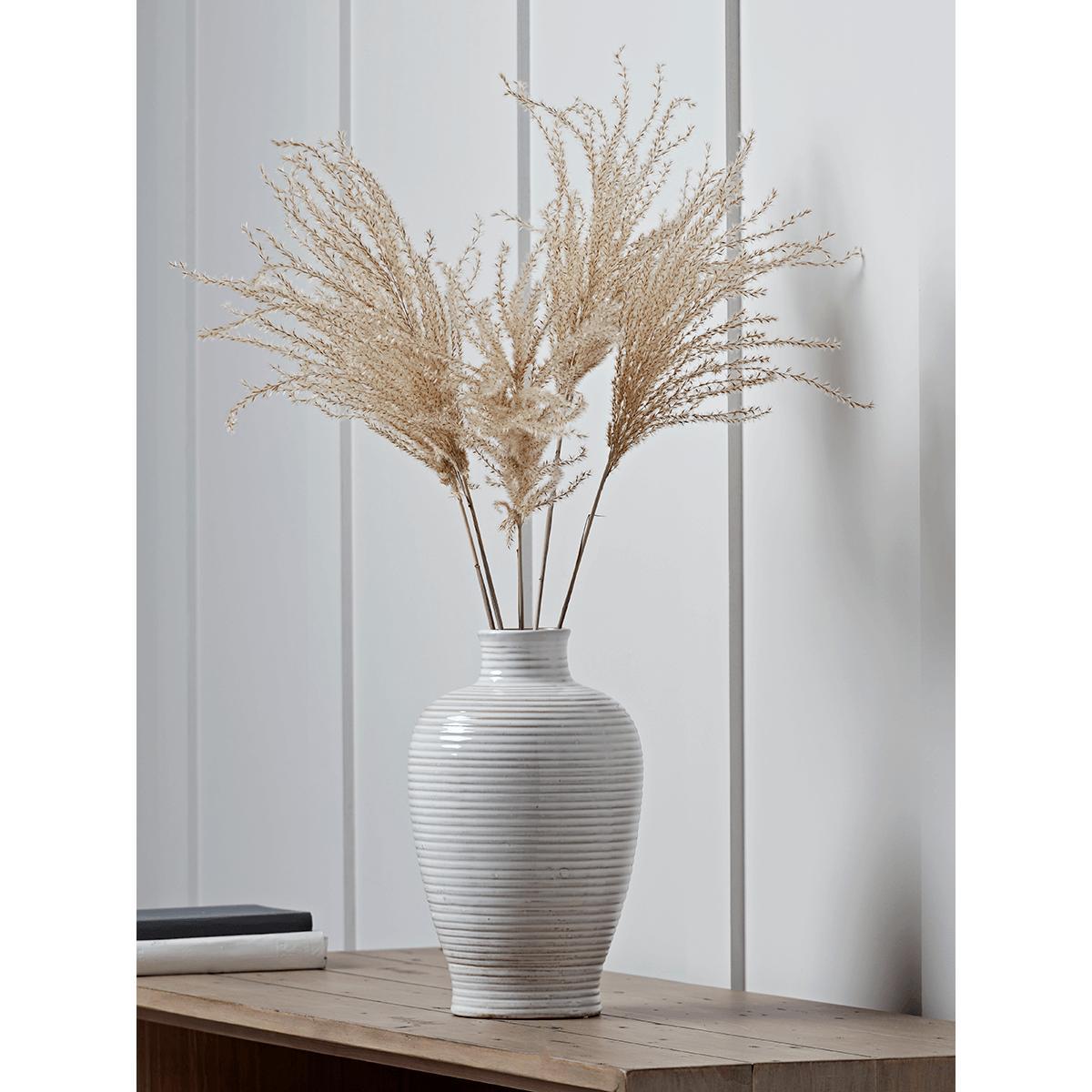 Our Ribbed Stoneware Vase, and its gentle decorative element to its surface, is the perfect vase for this seasons dried flora, and it will complement any neutral, pared-back space beautifully. Pair with our. Dried plumes. - the spout neck will support them effortlessly - style to a console for a relaxed modern look.