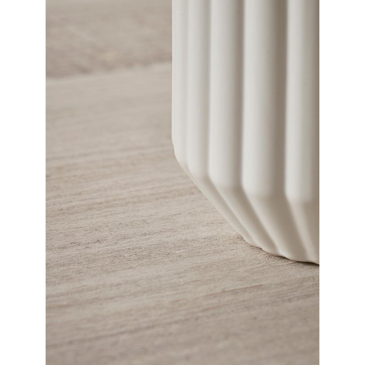 The deep grooved design and angular silhouette of this white ceramic vase increases the visual interest making it a statement addition to your interior. Narrowing to a tall slim neck, the vase is perfect for larger single stems- whether fresh or faux.