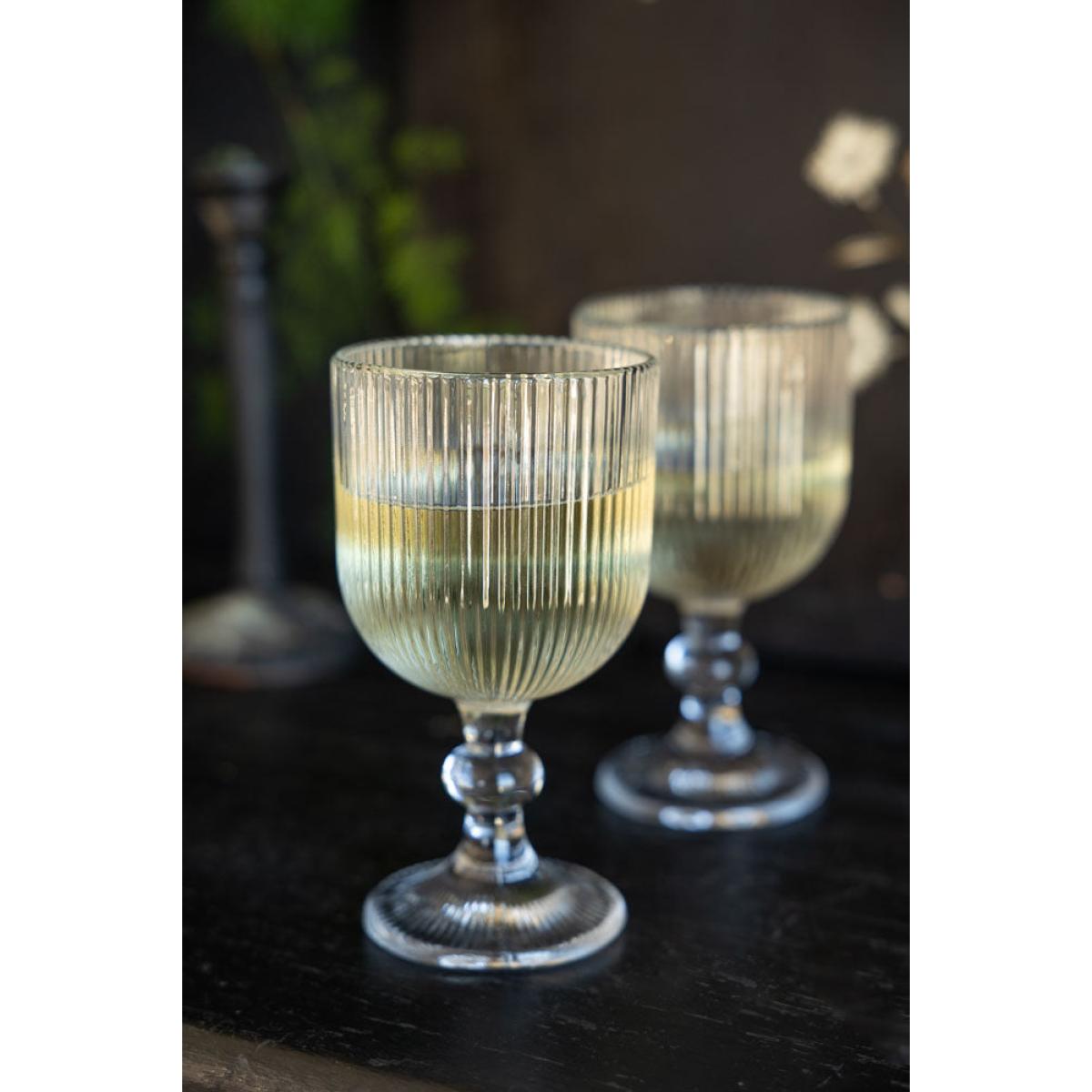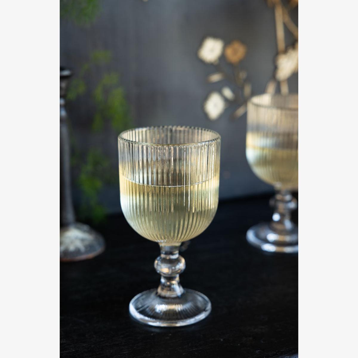 Let the good times roll with glassware that gives your dinner table the edge and promises a fine time had by all. The ribbed design of these goblet-style wine glasses means they’re a stylish addition to any table setting – with or without wine. An empty glass catches the light beautifully, adding a hint of sparkle. Whites appear more golden, while there’s a gorgeous depth to reds. These wine glasses are satisfyingly solid to hold, too, with a sturdy stem just made for wrapping your fingers around. Invoking a feeling of vintage arts and crafts, these glasses invite you to kick back, relax and indulge in the finer things in life. - Ribbed wine glass - Measures: H16.5cm x Dia. 8.5cm - Durable, sturdy design