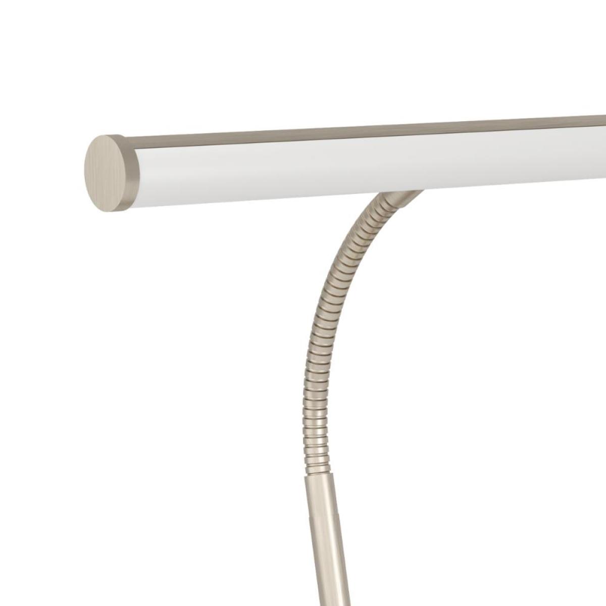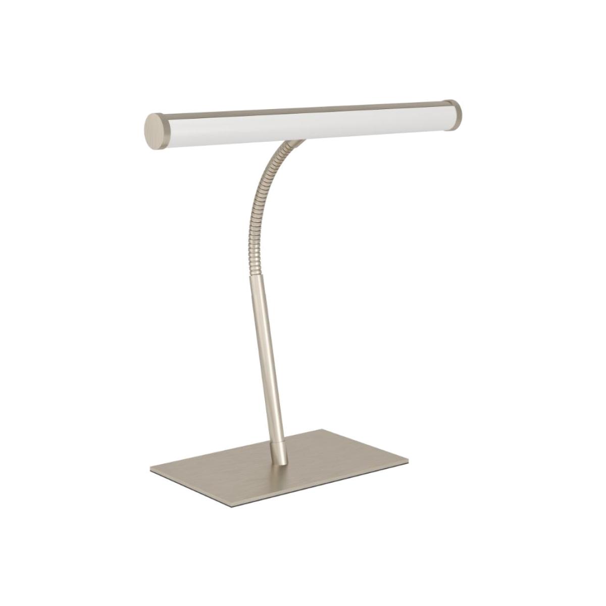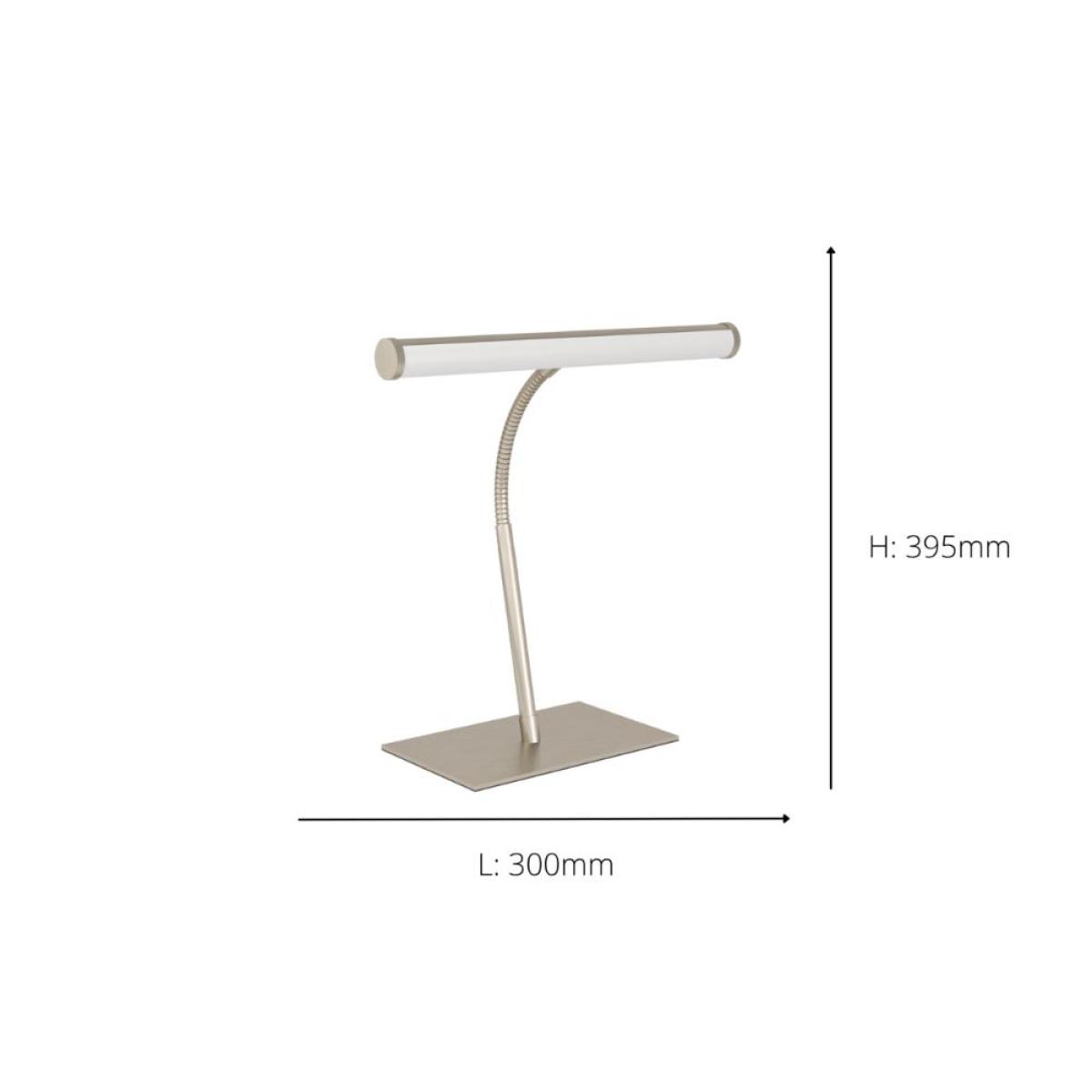 The combines modern functionality with a noble look in a matt nickel finish. The striking lamp head in tube shape sits on a flexible gooseneck that can be individually aligned – perfect for concentrated work or relaxed reading moments. The light can be operated intuitively via the touch button integrated on the side of the lamp tube: Holding down dims the brightness continuously. Short, multiple taps change the color temperature in three stages (3-step CCT) – from warm white to neutral white to cool white. The flat, angular base ensures a secure stand and harmoniously rounds off the elegant overall picture. This table lamp is the ideal choice for stylish workplaces, desks or bedside tables where design, lighting comfort and ease of use count in equal measure.