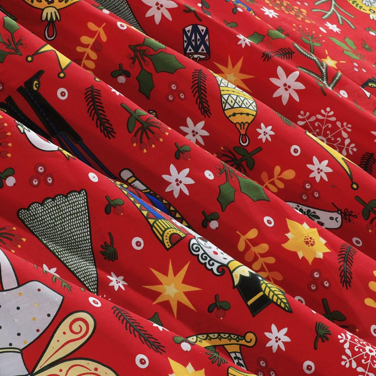 Introducing the VELOSSO Rich Cotton Festive Nutcracker Red Duvet Set, a lavish holiday gift that encapsulates the magic of Christmas in your child's sleep space. This enchanting bedding ensemble captures the essence of the season with its captivating Nutcracker design, adorned in a deep red hue that exudes warmth and elegance. Crafted from polycotton, the duvet set offers a luxurious touch, creating a cosy and inviting sleep environment for your child. The reversible design adds versatility, allowing you to switch between two charming Christmas-themed patterns featuring the iconic Nutcracker figure. With a button closing detail, this duvet set blends functionality with refinement, ensuring that the duvet stays securely in place while elevating the overall aesthetic of the bed. Designed for both convenience and festive charm, the set is machine washable and easy to care for. Available in single, double, and king size, the set includes a duvet cover and pillowcases, catering to various bed sizes. Elevate the holiday spirit with the VELOSSO Rich Cotton Festive Nutcracker Red Duvet Set. Enhance your child's sleep experience during the Christmas season, creating a space where dreams are adorned with the enchantment and elegance of the Nutcracker tradition.