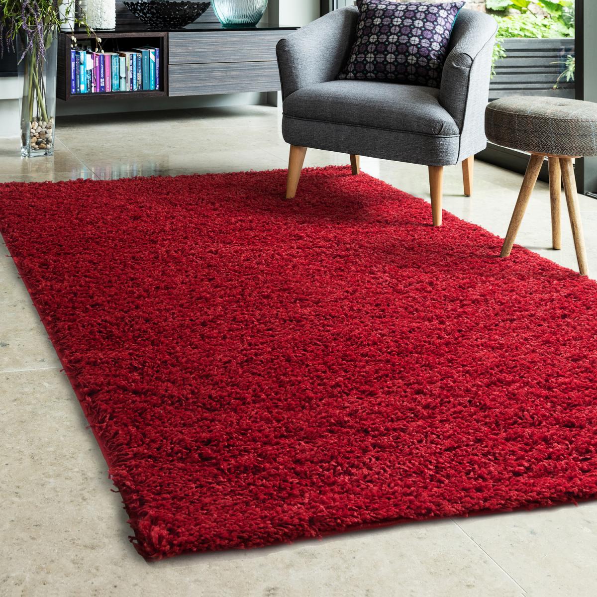 Rich Red Super Soft Warm 25mm Plain Shaggy Rug - Aras - Red / 2kg / 150cm