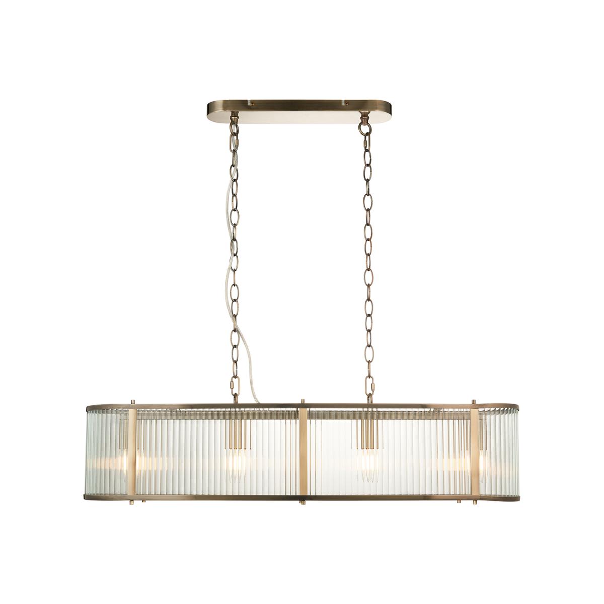 Richmond 4-Light Linear Pendant in Antique Brass & Ribbed Glass