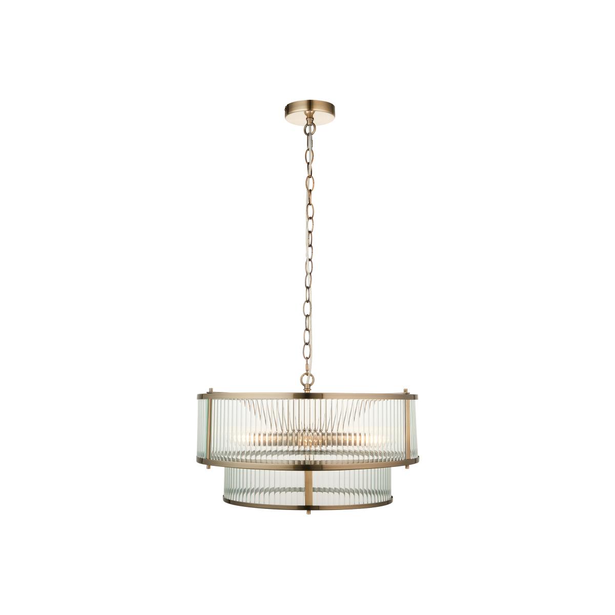 Richmond 5-Light Pendant in Antique Brass & Ribbed Glass