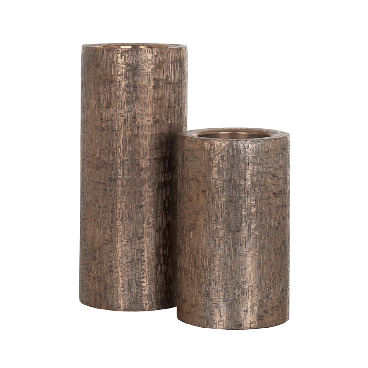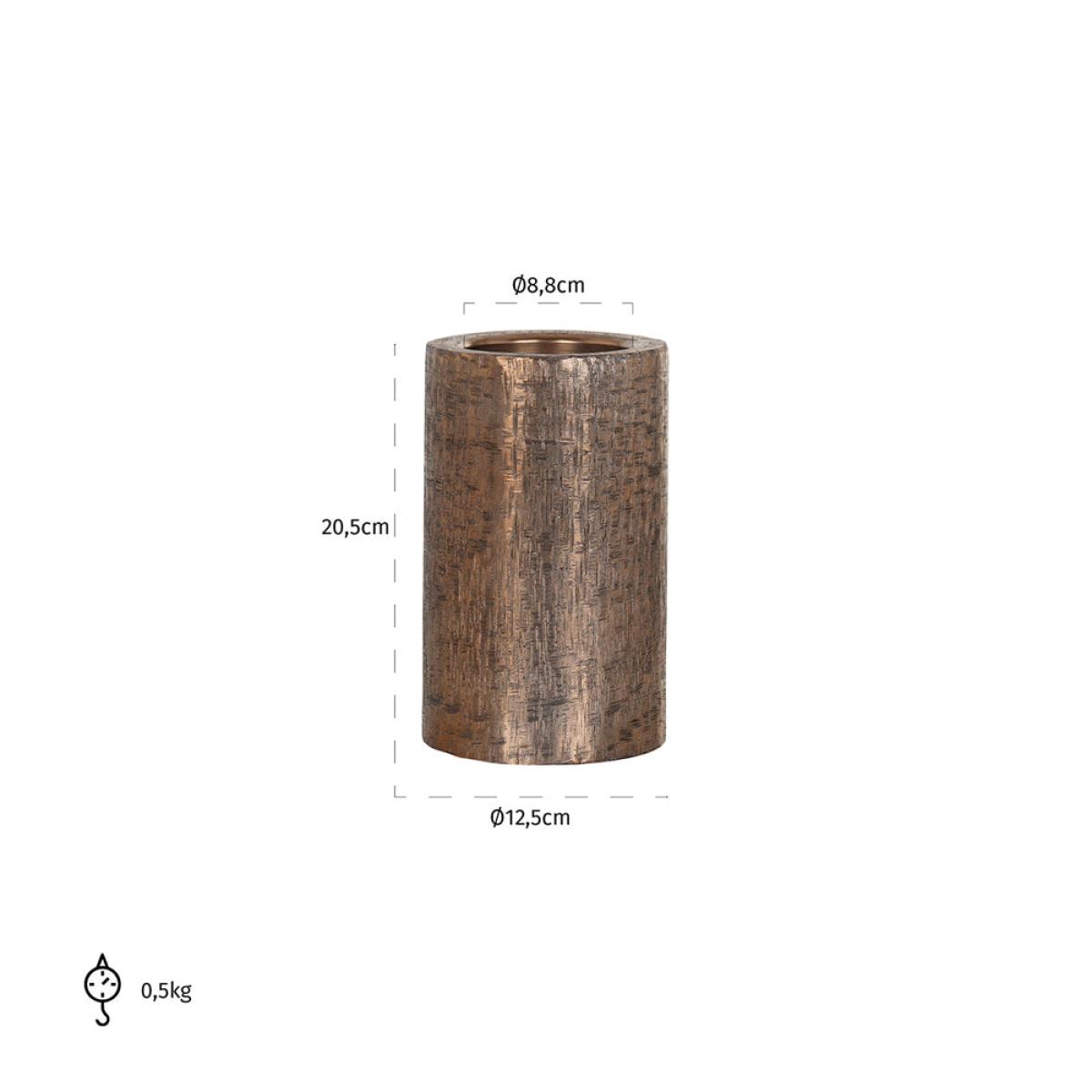 The bronze-coloured Richmond Alin Candle Holder is a designer-inspired piece that will add instant sophistication to any space. Made from aluminium but with a bronzed brushed effect with golden tones, this stunning piece is available in large or small sizes. Pick from a 20.5cm tall, 12.5cm wide candle holder or a larger piece of the same width measuring 30cm in height. Whichever size you choose, you can be assured of enjoying a timeless piece that will never go out of fashion. It is hugely versatile and can enhance many different design schemes, from industrial-inspired kitchens to decadent, traditional lounges and dining rooms. Dimensions: Small - H: 20.5 x W: 12.5 x D: 12.5 cm Large - H: 30 x W: 12.5 x D: 12.5 cm Materials: Aluminium Assembly Required: No Care Instructions:Wipe with a clean, dry cloth