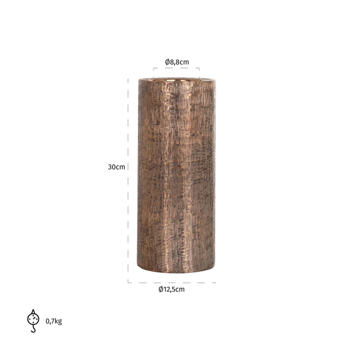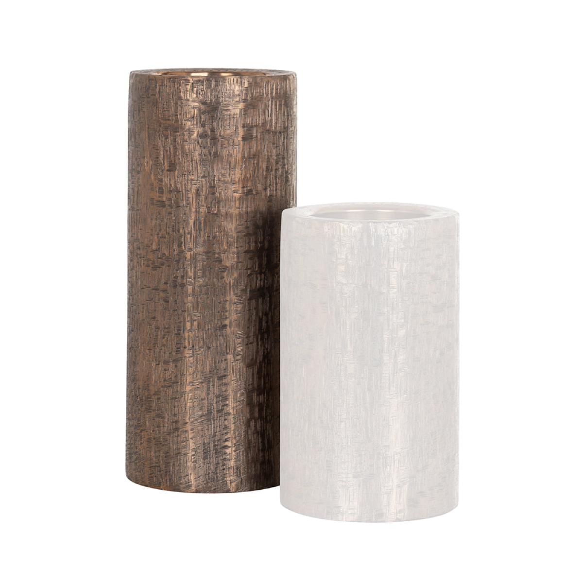 The bronze-coloured Richmond Alin Candle Holder is a designer-inspired piece that will add instant sophistication to any space. Made from aluminium but with a bronzed brushed effect with golden tones, this stunning piece is available in large or small sizes. Pick from a 20.5cm tall, 12.5cm wide candle holder or a larger piece of the same width measuring 30cm in height. Whichever size you choose, you can be assured of enjoying a timeless piece that will never go out of fashion. It is hugely versatile and can enhance many different design schemes, from industrial-inspired kitchens to decadent, traditional lounges and dining rooms. Dimensions: Small - H: 20.5 x W: 12.5 x D: 12.5 cm Large - H: 30 x W: 12.5 x D: 12.5 cm Materials: Aluminium Assembly Required: No Care Instructions:Wipe with a clean, dry cloth