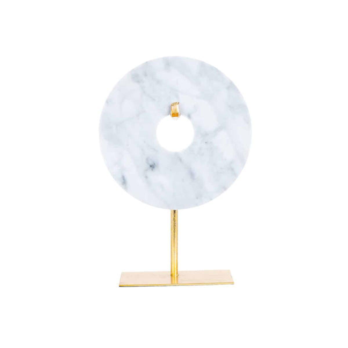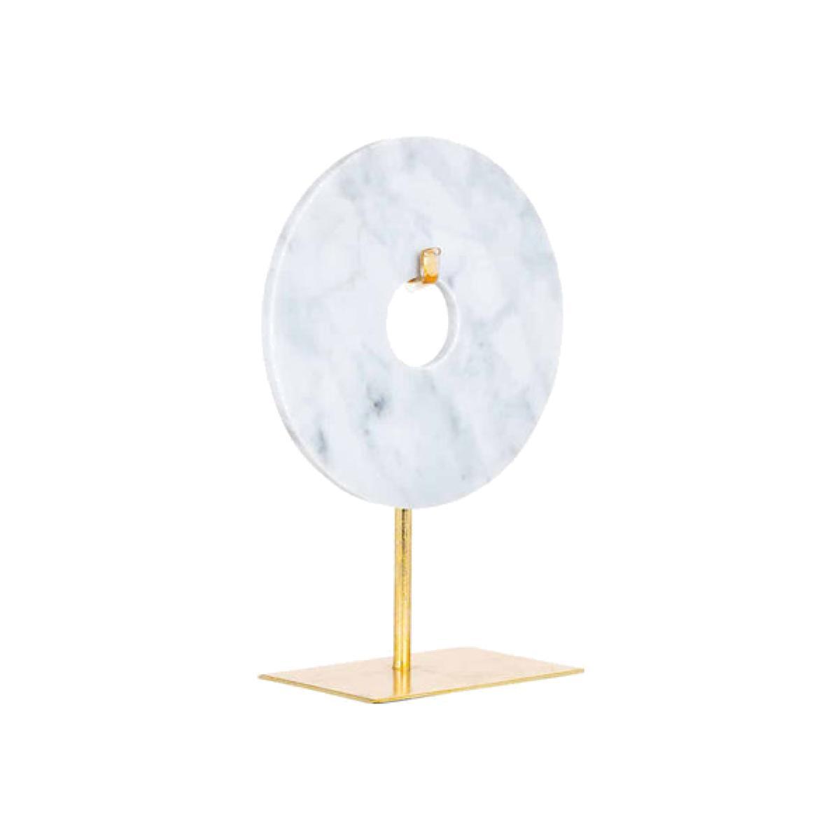 If you're looking for some home decorations, the Richmond Alina White Ornament is neutral enough to fit into any kind of décor style, but also eye-catching enough to make an artistic statement. Th. View More. If you're looking for some home decorations, the Richmond Alina White Ornament is neutral enough to fit into any kind of décor style, but also eye-catching enough to make an artistic statement. This decorative ornament is the perfect combination of marble, polyresin and metal, with the stand of the piece being made of golden metal and the decoration itself being a circular disk of polyresin and white marble. Choose your size to fit your home, with the large measuring at 44. 5cm in height, 30cm in width and 10cm in depth and the small measuring 30cm in height, 20. 5cm in width and 10cm in depth.