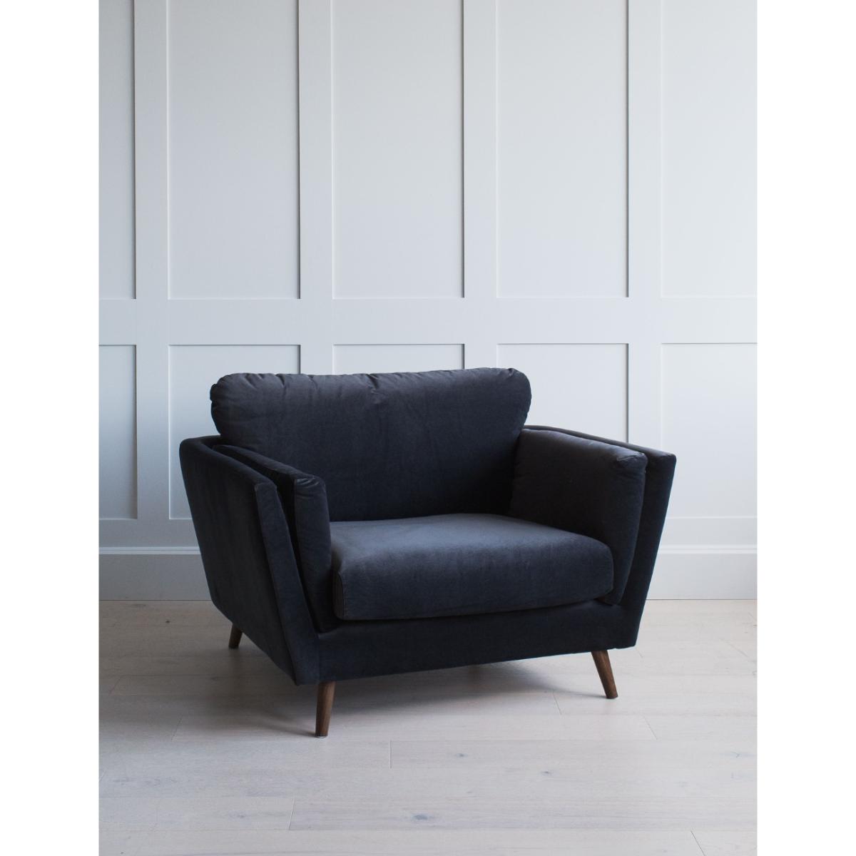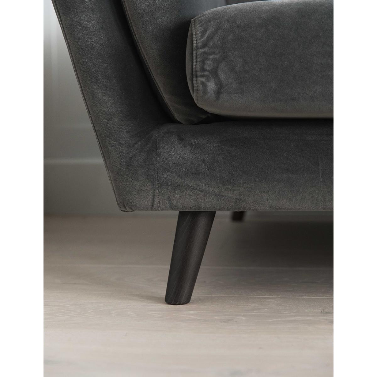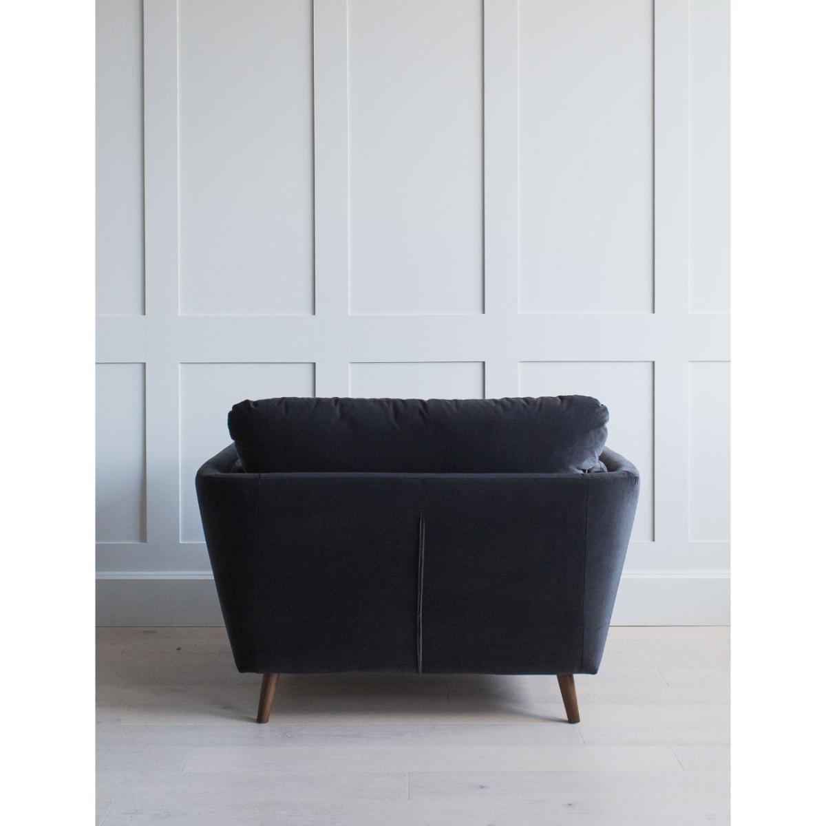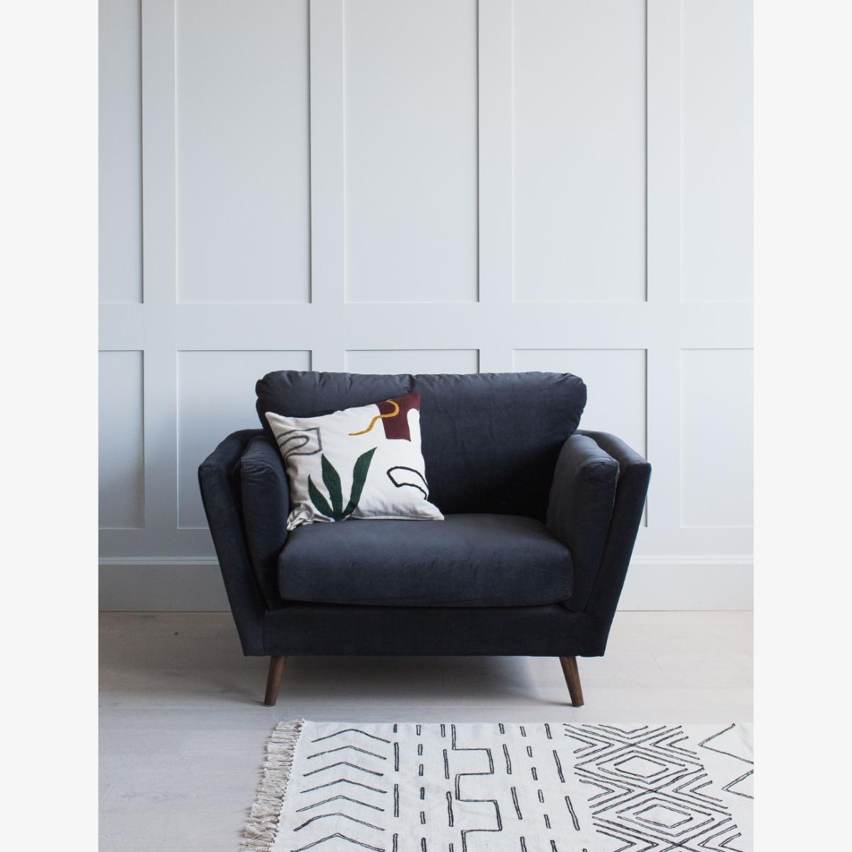 The perfect accompaniment to the matching sofa, footstool and corner sofa, the Richmond armchair is available in two sizes. The snuggler (photographed here) is perfect for a cosy love seat or if you fancy a little extra space to lounge. Alternatively, we also offer the armchair in a smaller size that is perfect for small corners. The armchair features the same comfy cushions and streamlined silhouette as the matching sofa, with a distinct nod to 1970’s designs. Photographed here in the Love Seat Size in Classic Velvet Grey. The leg colour in the photograph is Black. All other images are computer generated as a colour reference with a Bleached Oak leg. We recommend you order a free fabric swatch to see your chosen material up close before ordering your sofa, armchair or footstool!