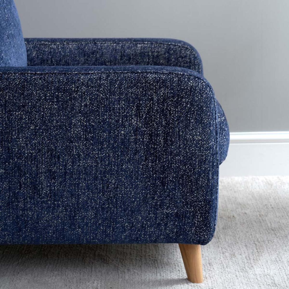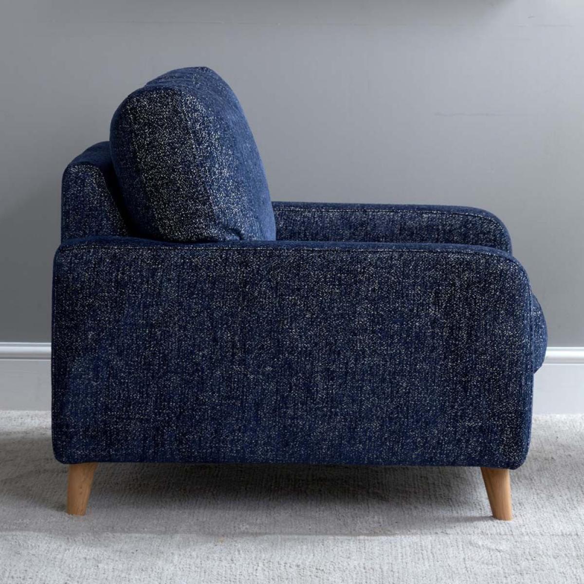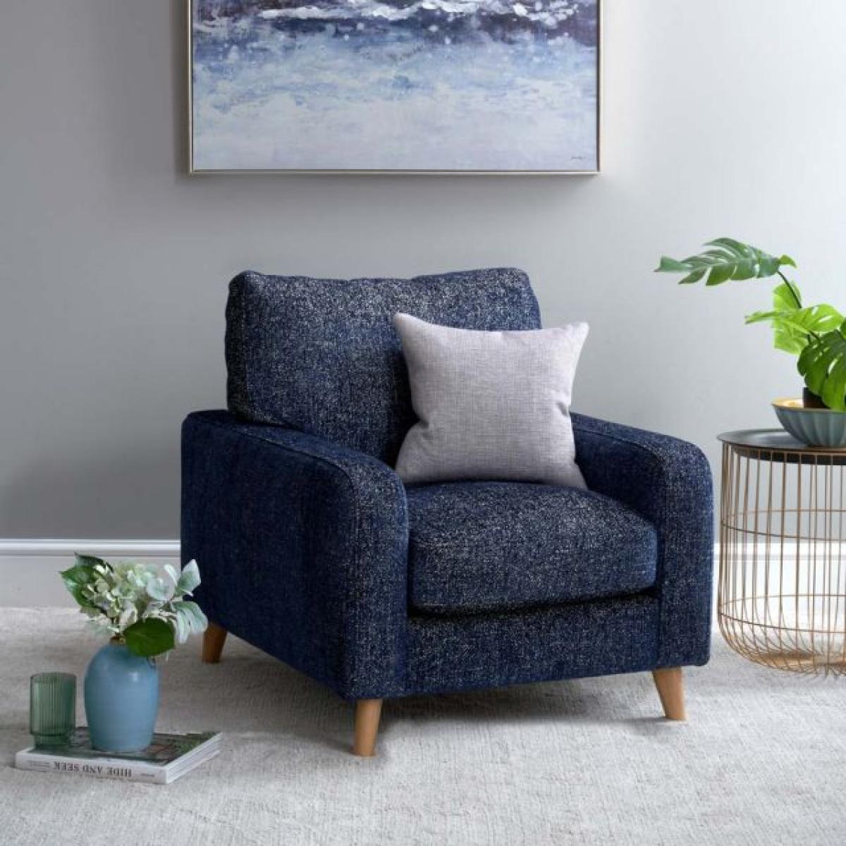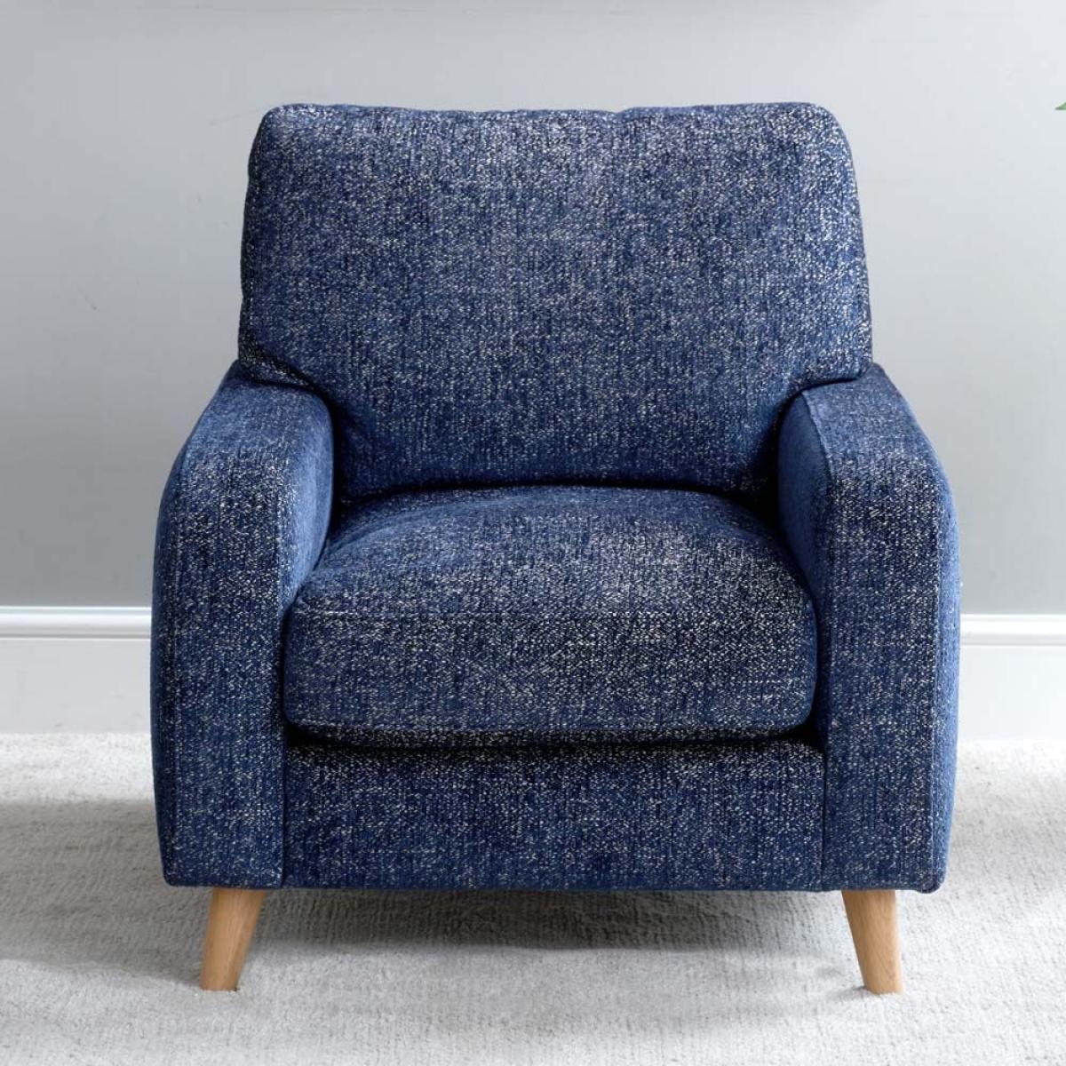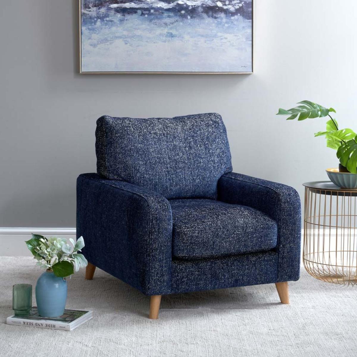 The Richmond Armchair is a great partner to the Richmond sofa. With the same scandi style wooden legs, and soft upholstery. Handmade in the EU the Richmond armchair is a real joy to sit in and gently supports you while allowing just the right amound of give for a very comfortable experience. Upholstered here in Blutiful fabric which is a mixed weave and soft to the touch. More fabric options available soon. Overall Dimensions W80cm x H87cm x D96cm - Seat Height 39cm x Seat Width 55cm x Seat Depth 61cm Wooden LegsSoft and supportive Simple self assembly