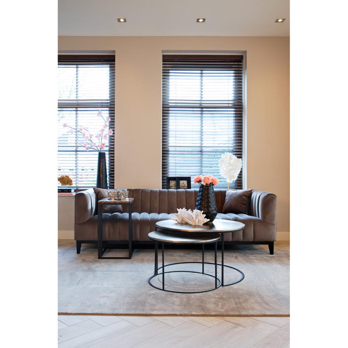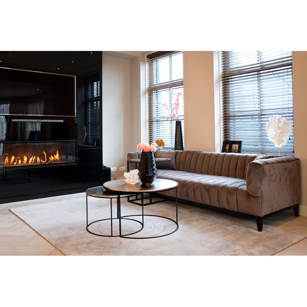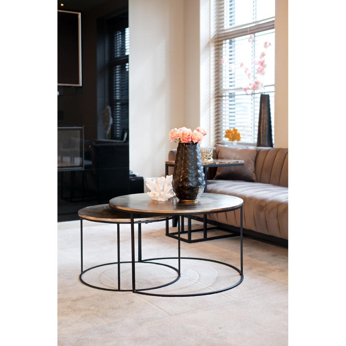 This pair of Asher coffee tables from Richmond Interiors can instantly transform any room, providing a practical place to display treasures and store useful items whilst also offering a visual spectacle all on their own. The attention-grabbing design is made to enhance your space. This is thanks to the tables' subtly textured aluminium champagne gold tops and slender, curved black iron legs. The way the smaller table swivels out from beneath is also impressively sleek and hugely practical. The larger table measures 47cm x 82cm, whilst the smaller of the set is 41cm tall and 61cm wide. Other finishes are also available. *Moot Trading Ltd is not a lender and acts only as an introducer. The credit product is provided by Klarna Bank AB (publ). Credit is only available to permanent UK residents aged 18 and over, subject to status. Terms and conditions apply. Please note that the following products are not regulated by the FCA: Pay in 30 days and Pay in 3 instalments. Read More.