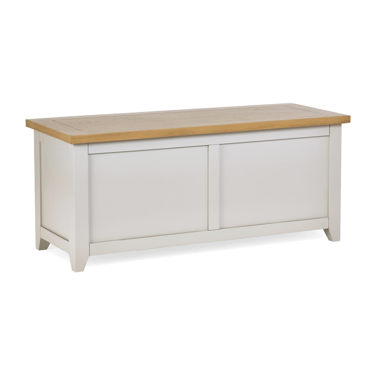 Designed with practicality in mind, the Richmond storage bench features a spacious storage compartment beneath the seat. Perfect for stowing away shoes, blankets, or other household items, this storage solution helps you maintain a clutter-free environment. The hinged lid allows for easy access to your belongings while providing a comfortable seating surface. The neutral color palette and versatile design make this storage bench a seamless addition to various interior styles. Whether you're aiming for a modern, farmhouse, or transitional look, this bench effortlessly adapts to your decor.