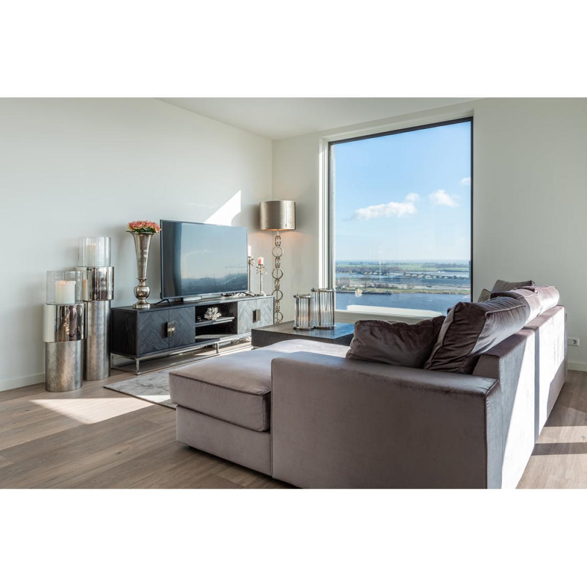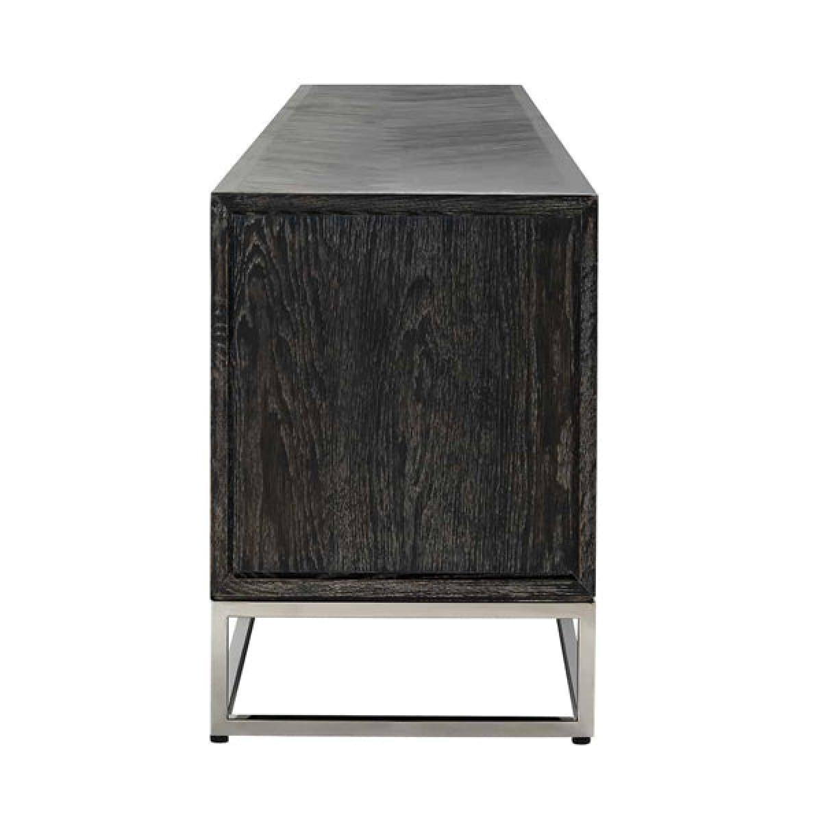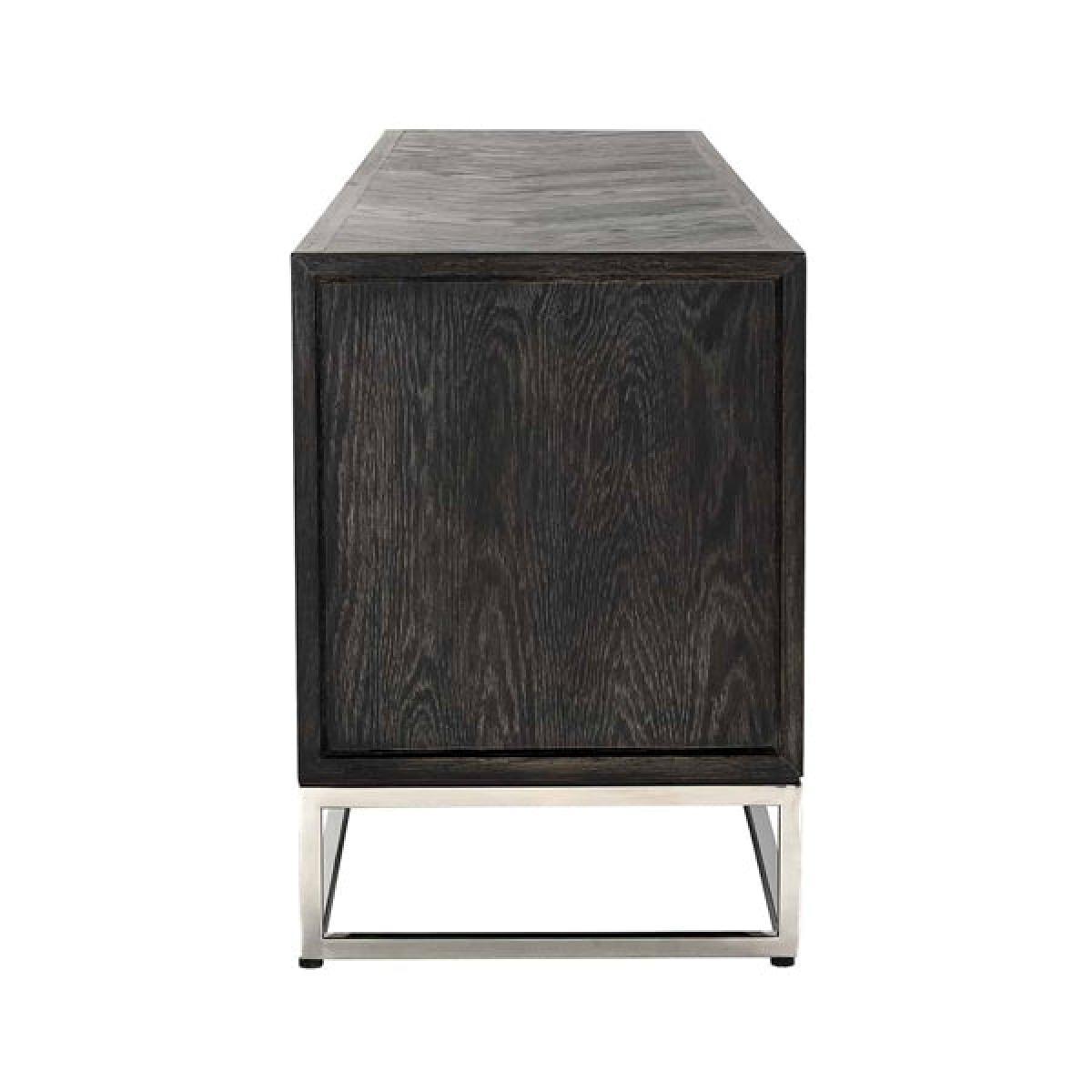 The Richmond Blackbone Silver TV Unit is a quality piece which will suit any home. Made from oak, the unit sits on a stainless-steel frame and has plenty of space for technical and audio equipment. Each end has a double front cupboard with doors, and the centre piece features an open shelving space. Measuring H: 60cm, W: 185cm and D: 42cm this piece is ideal for storing DVDs, remote controls and gaming equipment, making everything easy to access when needed and tidy away when not in use. The top of the unit features a unique herringbone design, giving it a sophisticated finish. *Moot Trading Ltd is not a lender and acts only as an introducer. The credit product is provided by Klarna Bank AB (publ). Credit is only available to permanent UK residents aged 18 and over, subject to status. Terms and conditions apply. Please note that the following products are not regulated by the FCA: Pay in 30 days and Pay in 3 instalments. Read More.