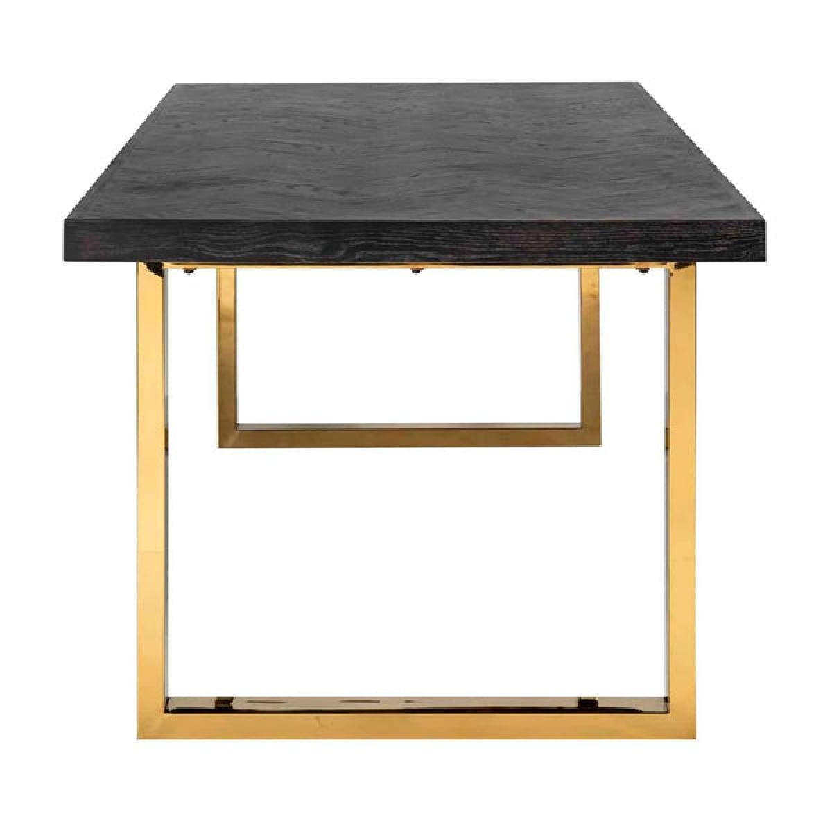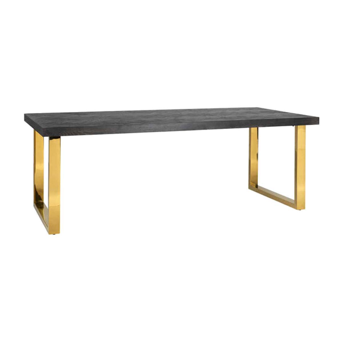 This gorgeous black dining table features an oblong top with sturdy square U-style legs finished in contrasting gold. It is a fantastic piece that will look stunning in any dining room. This table's minimal geometric design and simple colours will leave you plenty of choice when deciding which dining chairs to feature with it. It offers a great combination of traditional modern design and contemporary quality that will work in many types of room and design styles. This table offers you an inviting space to relax and entertain your guests. The dimensions are 77cm high, 220cm long and 100cm in width. *Moot Trading Ltd is not a lender and acts only as an introducer. The credit product is provided by Klarna Bank AB (publ). Credit is only available to permanent UK residents aged 18 and over, subject to status. Terms and conditions apply. Please note that the following products are not regulated by the FCA: Pay in 30 days and Pay in 3 instalments. Read More.
