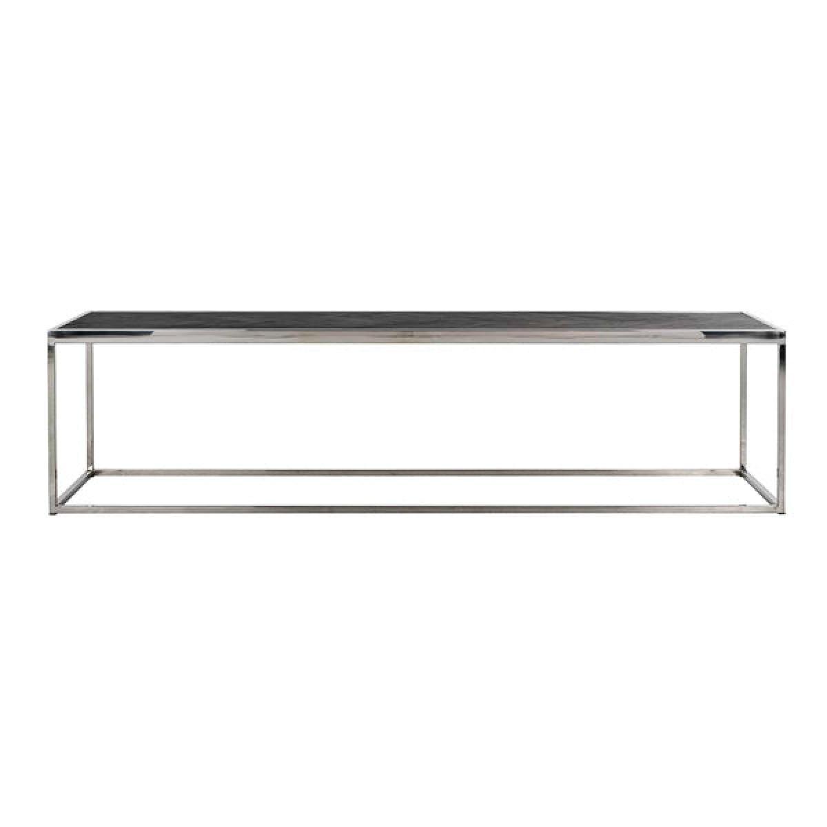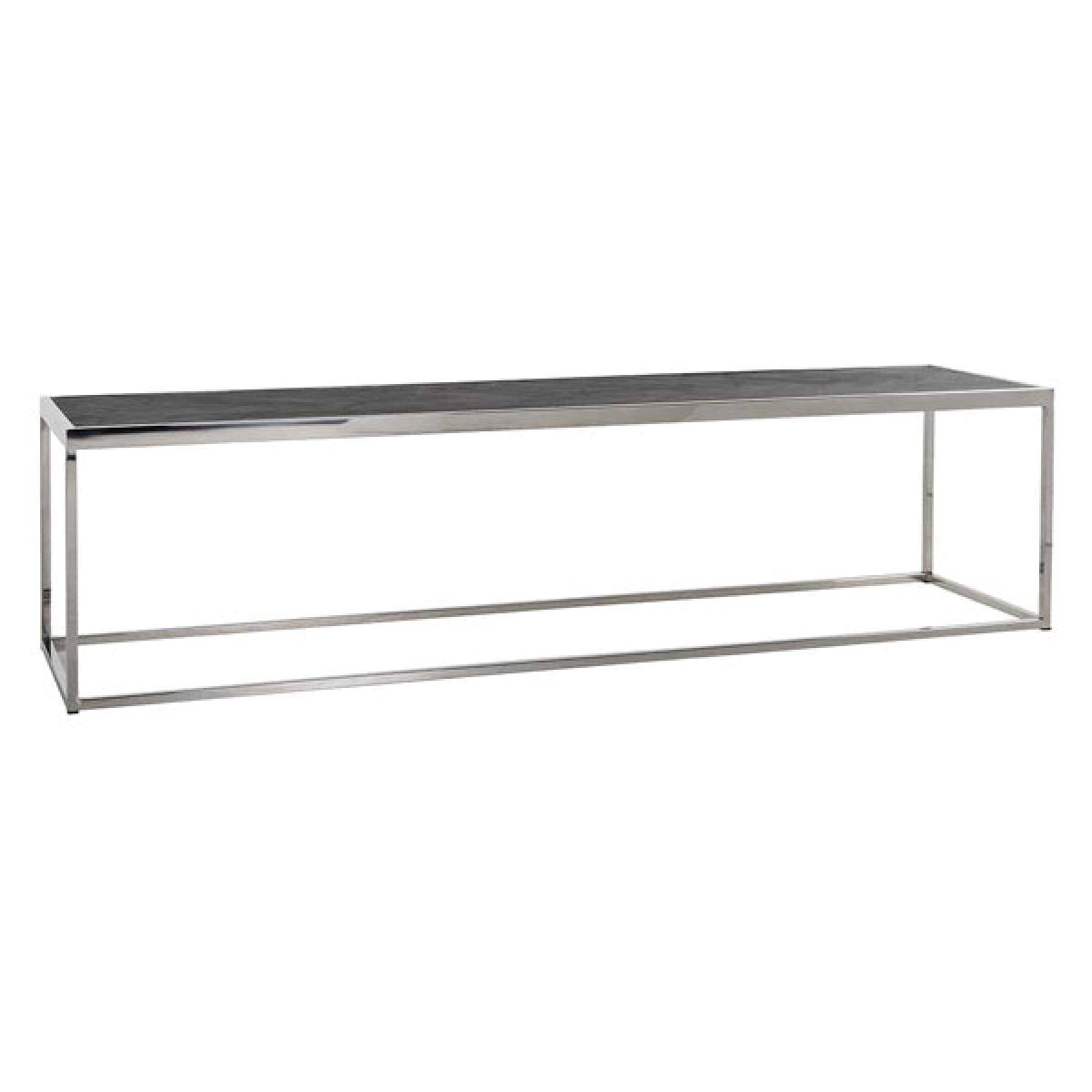 Welcome any guest to your home with this beautiful coffee table. Richmond presents their Blackbone collection, furnished with finely polished black oak panels criss-crossing the surface and creating a unique surface to marvel at. These are supported by a sturdy well-finished stainless steel frame which can be silver or gold in colour and forming a cuboid shape. This exquisite piece will blend in with modern and classical designs, creating optimal flexibility. It is easily movable at just 21kg and is 90x90cm in surface area, leaving plenty of useable space. This beautiful coffee table is the perfect addition to any home or working space. *Moot Trading Ltd is not a lender and acts only as an introducer. The credit product is provided by Klarna Bank AB (publ). Credit is only available to permanent UK residents aged 18 and over, subject to status. Terms and conditions apply. Please note that the following products are not regulated by the FCA: Pay in 30 days and Pay in 3 instalments. Read More.