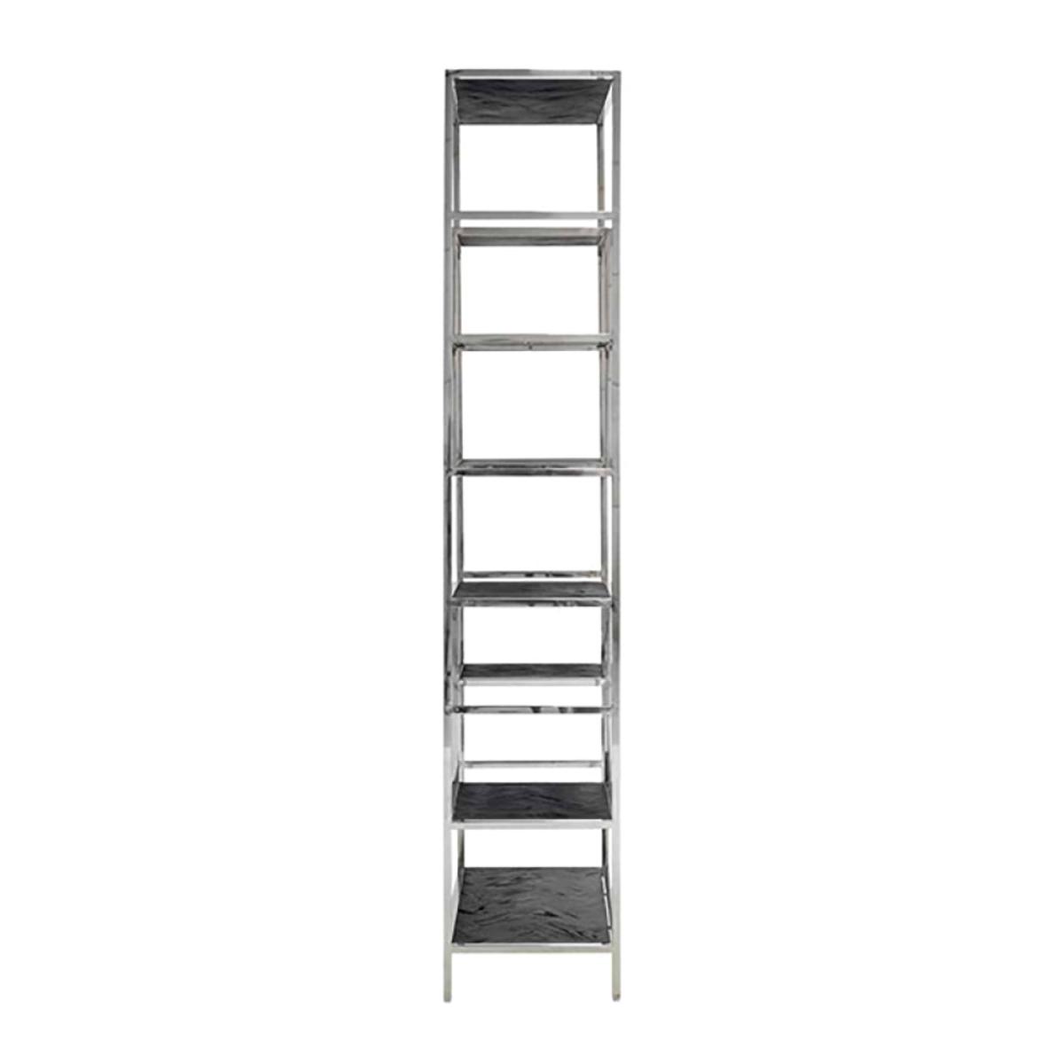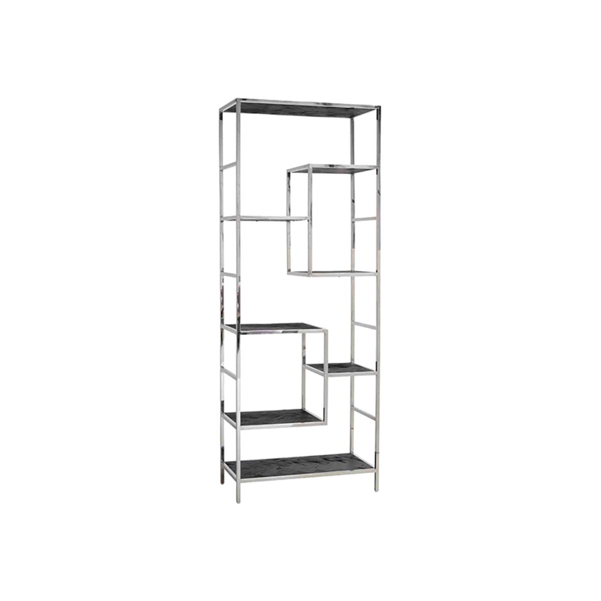 The Richmond Blackbone silver display cabinet boasts a structural elegance that belies the strength of its construction. Not only does it look stunning, this black and wall cabinet is a supremely practical choice. It offers seven shelves to display your favourite treasures and measures 210cm in height, 80cm in width and 40cm in depth. Even before you place your prized possessions on show, the black oak and stainless steel cabinet will be an asset to any room. It has an understated chic quality that will enhance all sorts of homes and complement a wide range of colour schemes and home décor ideas. Dimensions: H: 210 x W: 80 x D: 40 cm. Weight: 37.5kg Materials: Faux marble, Stainless steel Assembly Required: No