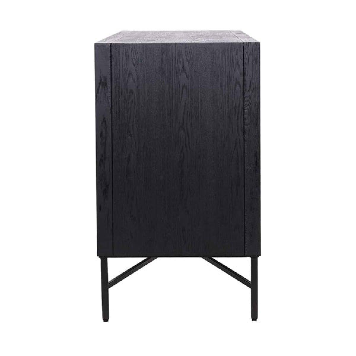 The Richmond Blax Black Sideboard is a large, solid and sophisticated piece of furniture. Made from black oak and supported by a steel frame, the unit has two sliding doors which glide open and shut and feature a cuboid pattern on the front that adds to the overall design and look. Ideal for an entrance hallway or lounge space, the unit measure H: 85 cm, W: 160 cm and D: 50 cm. The unit sits off the ground, resting on four legs and the matching frame. Perfect for storing a number of items, including technical equipment, photo frames, documents and home stationery. *Moot Trading Ltd is not a lender and acts only as an introducer. The credit product is provided by Klarna Bank AB (publ). Credit is only available to permanent UK residents aged 18 and over, subject to status. Terms and conditions apply. Please note that the following products are not regulated by the FCA: Pay in 30 days and Pay in 3 instalments. Read More.