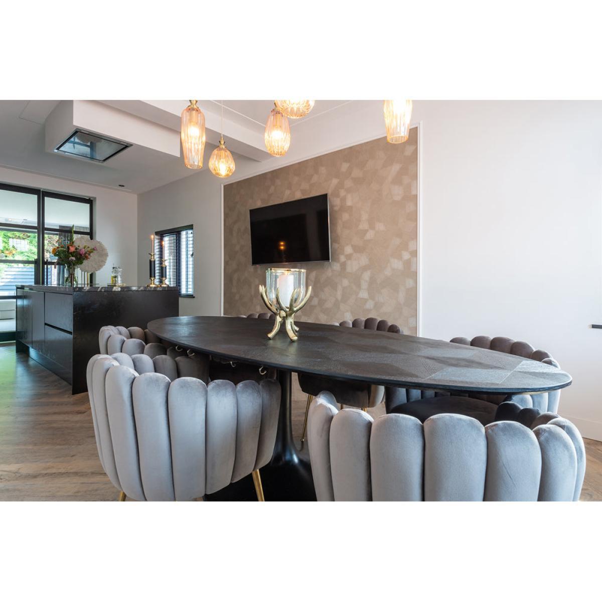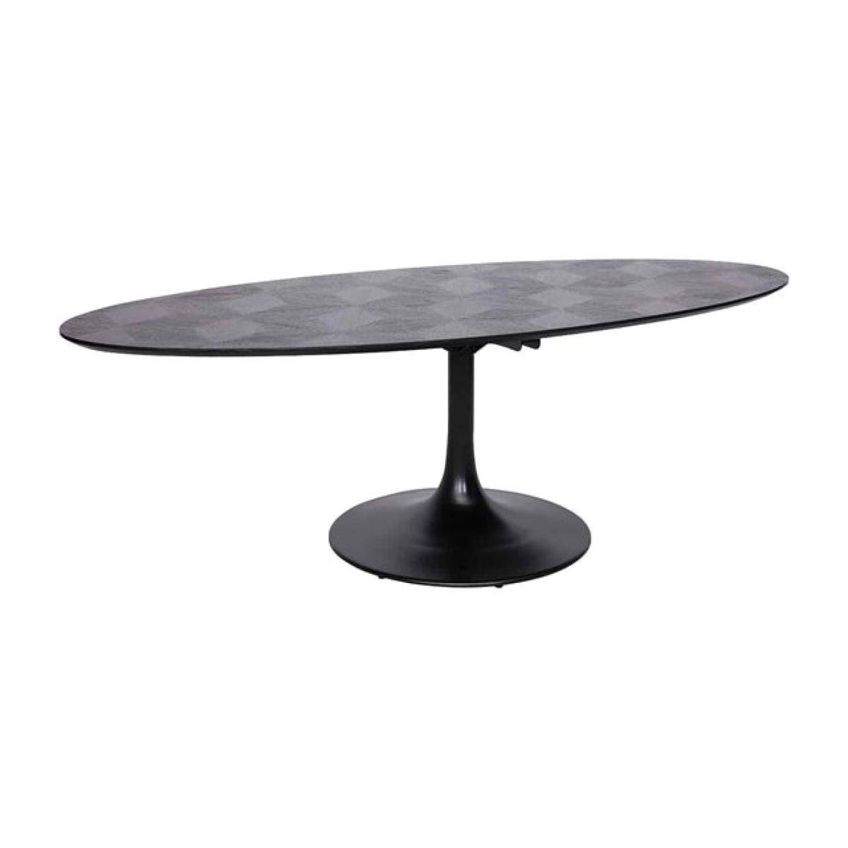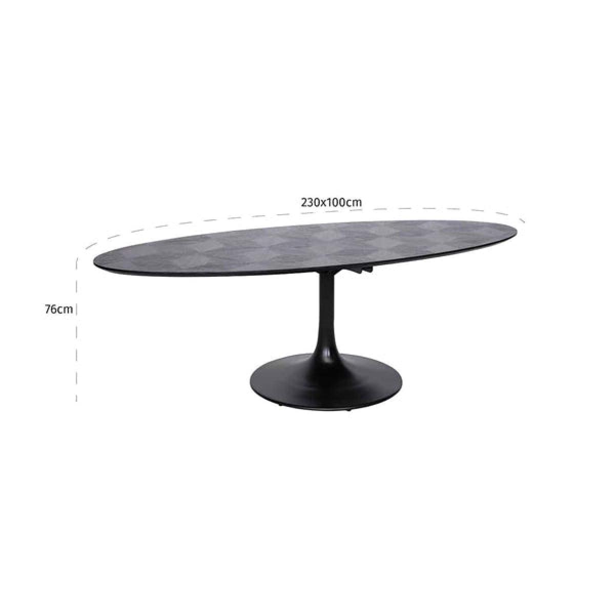 Update your entertaining space with the Richmond Blax oval dining table. Its sleek black base curves elegantly upward, underscoring the spectacular black tabletop that is subtly adorned with a chequerboard pattern that really catches the eye. The Blax's lustrous sense of style will mesh well with any style of décor, flexibly teaming up with your choice of dining chairs to provide a cultured and sophisticated space to entertain your guests. Weighing in at 120. 5kg, this piece is substantial, its sturdy stature built to delight and last. Measuring 76cm high, 230cm wide and 100cm across, the Blax is sure to cater to all your dining needs. *Moot Trading Ltd is not a lender and acts only as an introducer. The credit product is provided by Klarna Bank AB (publ). Credit is only available to permanent UK residents aged 18 and over, subject to status. Terms and conditions apply. Please note that the following products are not regulated by the FCA: Pay in 30 days and Pay in 3 instalments. Read More.