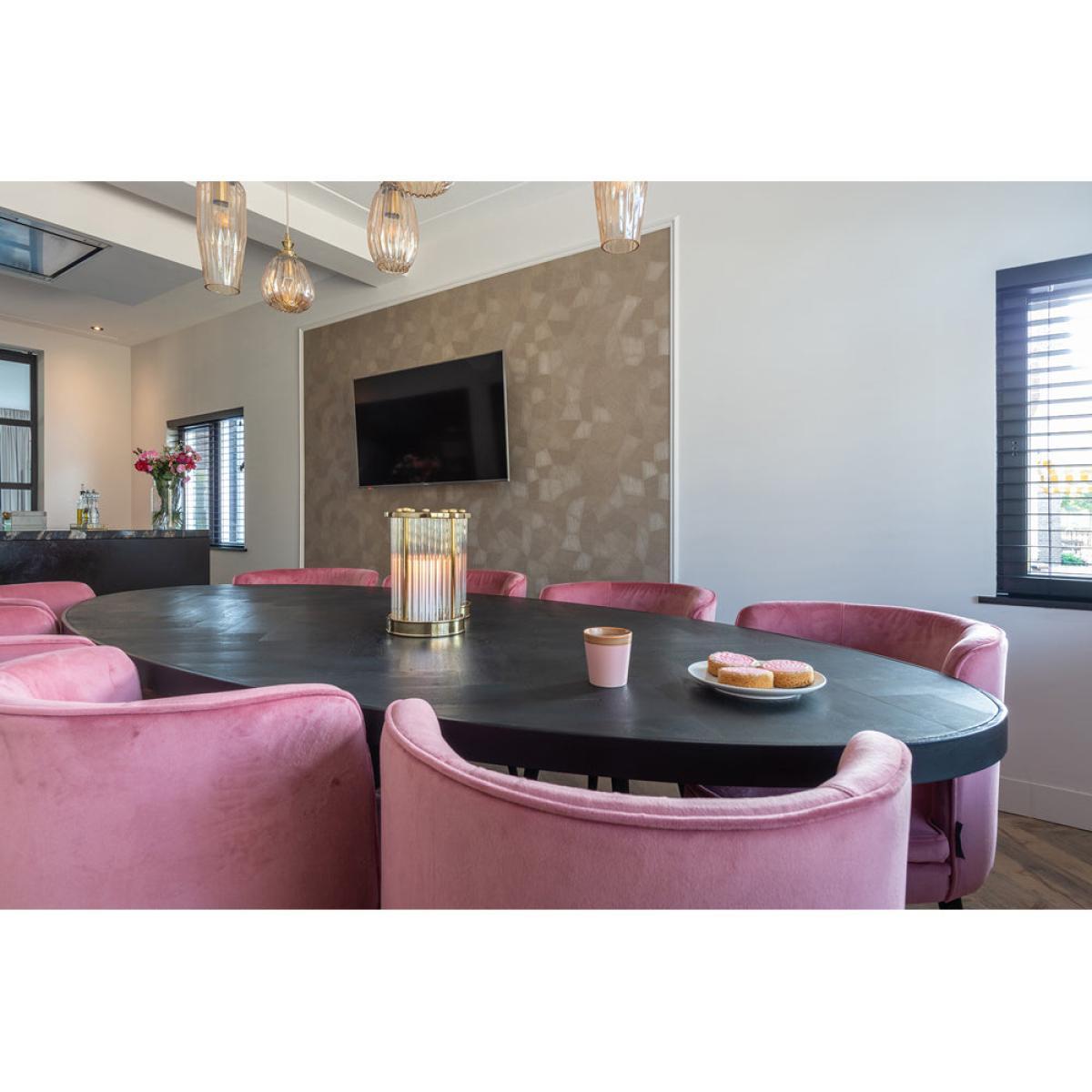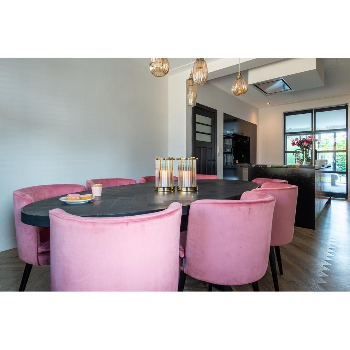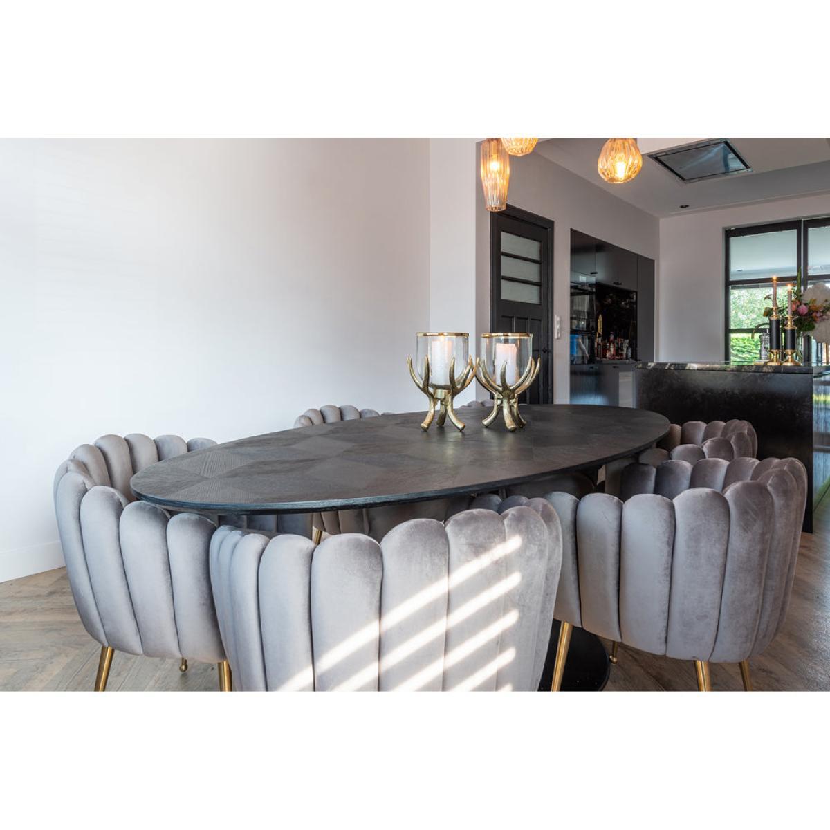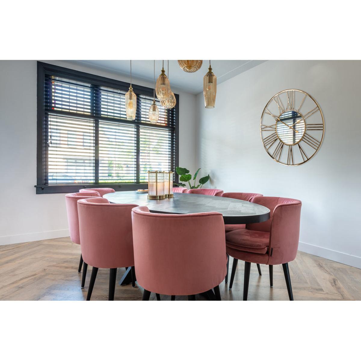 Update your entertaining space with the Richmond Blax oval dining table. Its sleek black base curves elegantly upward, underscoring the spectacular black tabletop that is subtly adorned with a chequerboard pattern that really catches the eye. The Blax's lustrous sense of style will mesh well with any style of décor, flexibly teaming up with your choice of dining chairs to provide a cultured and sophisticated space to entertain your guests. Weighing in at 120. 5kg, this piece is substantial, its sturdy stature built to delight and last. Measuring 76cm high, 230cm wide and 100cm across, the Blax is sure to cater to all your dining needs. *Moot Trading Ltd is not a lender and acts only as an introducer. The credit product is provided by Klarna Bank AB (publ). Credit is only available to permanent UK residents aged 18 and over, subject to status. Terms and conditions apply. Please note that the following products are not regulated by the FCA: Pay in 30 days and Pay in 3 instalments. Read More.