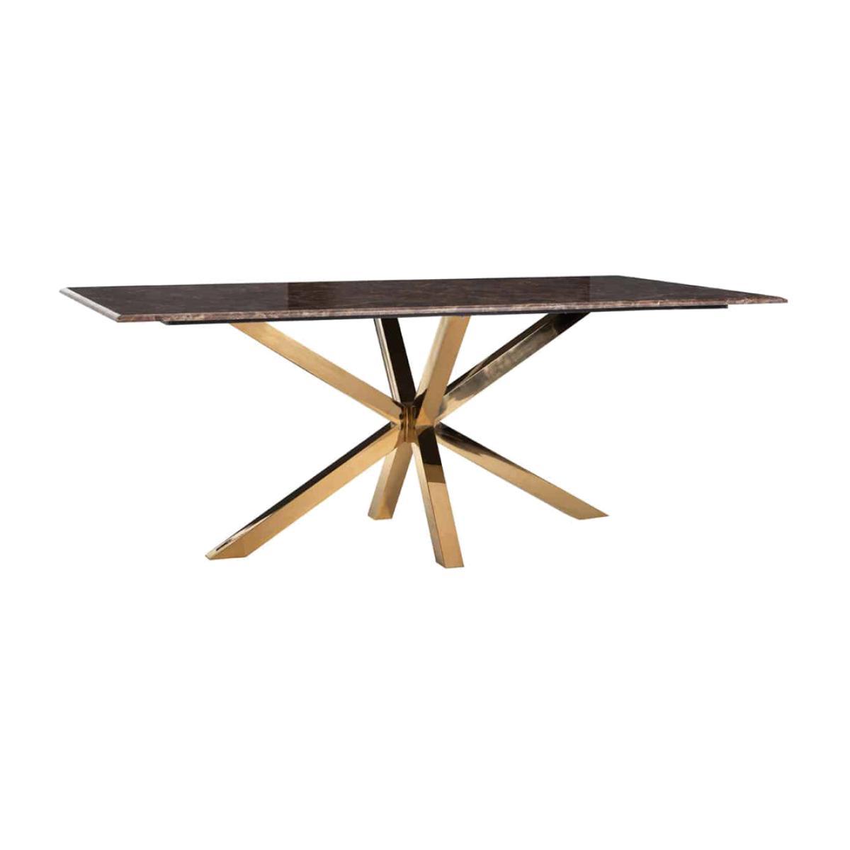 Make a statement in your dining area with the Richmond Conrad dining table. With its of-the-moment chic aesthetics and tastefully flamboyant stature, it is sure to look the part in any contemporary home, teaming well with a variety of décor and colour schemes. The Conrad's brown faux emperor marble top looks stunningly sleek and makes a dashing contrast against its bold and intricate gold frame legs. Measuring 77cm in height, 200cm in width and 100cm in depth, the Conrad will be equally perfect for hosting a suave dinner party or just a civilised meal for one in comfort and style. *Moot Trading Ltd is not a lender and acts only as an introducer. The credit product is provided by Klarna Bank AB (publ). Credit is only available to permanent UK residents aged 18 and over, subject to status. Terms and conditions apply. Please note that the following products are not regulated by the FCA: Pay in 30 days and Pay in 3 instalments. Read More.